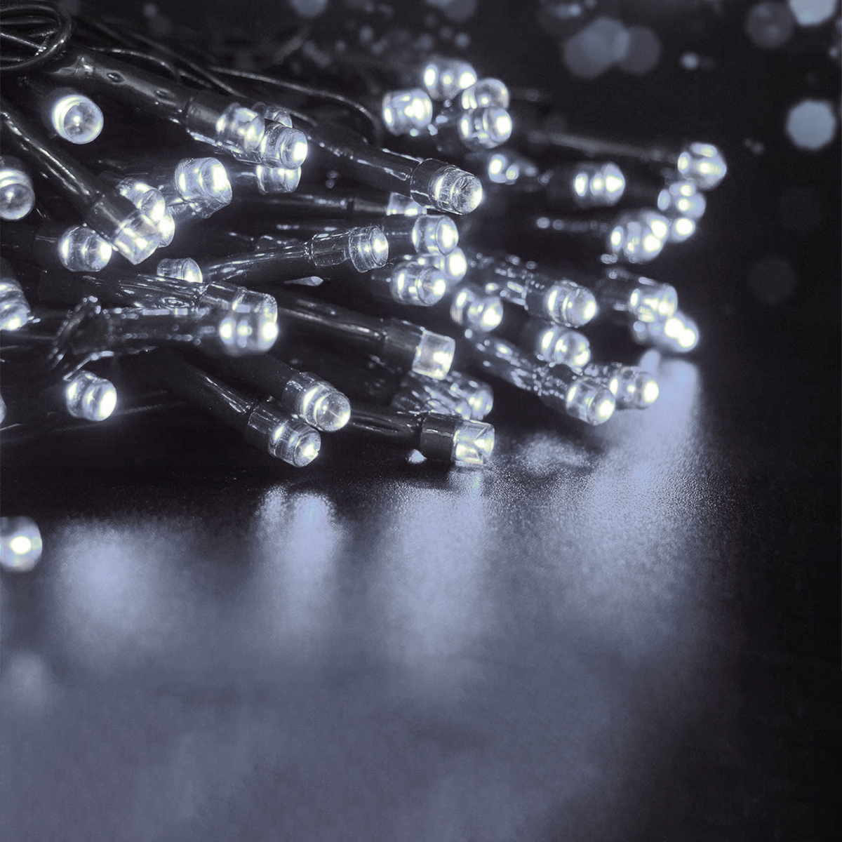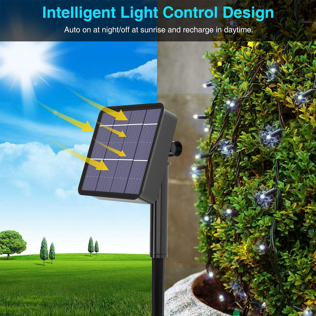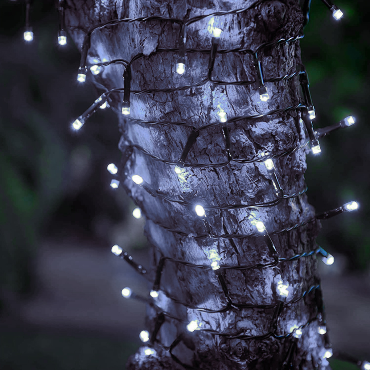 85808 Διακοσμητική Γιρλάντα 10 Μέτρων με Controller 8 Προγραμμάτων Φωτισμού – 100 LED 4W με Ενσωματωμένη Μπαταρία 600mAh – Φωτοβολταϊκό Πάνελ – Αισθητήρα Ημέρας-Νύχτας – Βάση Κήπου & Σκούρο Πράσινο Καλώδιο Αδιάβροχη IP65 Ψυχρό Λευκό 6000K Μ10m