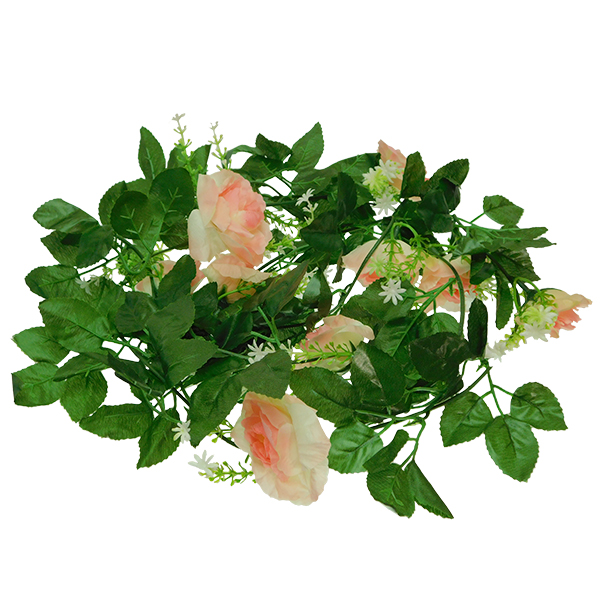 GloboStar® 09003 Τεχνητό Κρεμαστό Φυτό Διακοσμητική Γιρλάντα Μήκους 2.2 μέτρων με 10 X Μεγάλα Τριαντάφυλλα Ροζ