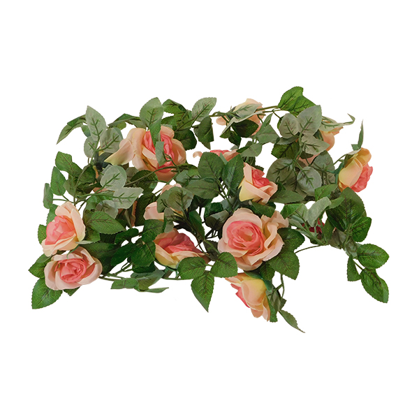 GloboStar® 09006 Τεχνητό Κρεμαστό Φυτό Διακοσμητική Γιρλάντα Μήκους 2 μέτρων με 16 X Μεγάλα Τριαντάφυλλα Ροζ Σομόν