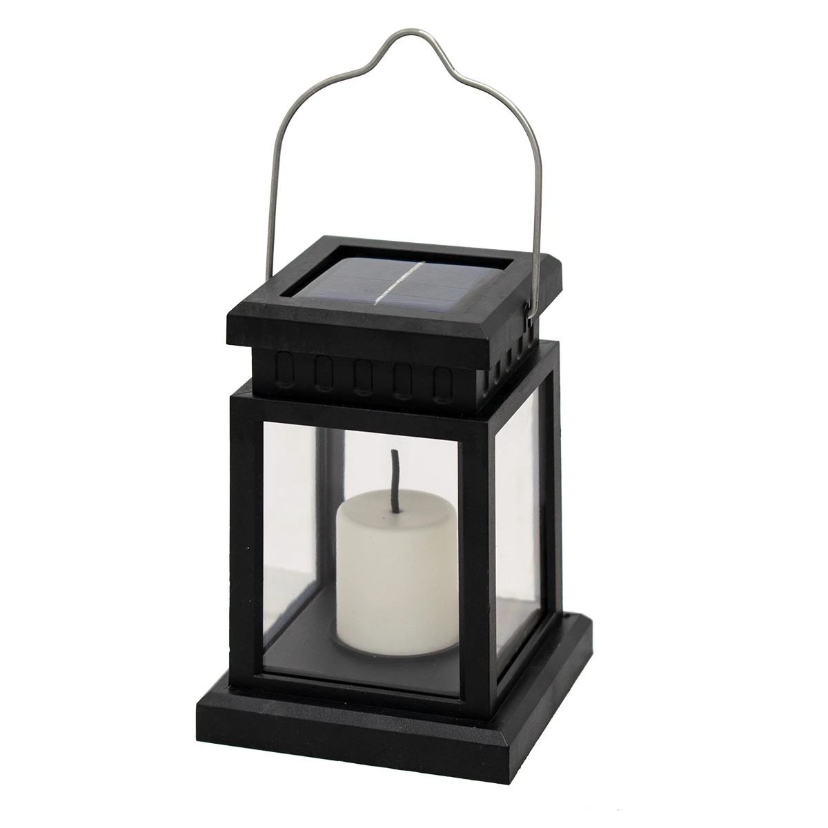 GloboStar® 71506 Αυτόνομο Ηλιακό Κρεμαστό Διακοσμητικό Φωτιστικό Φανάρι με Κεράκι LED 1W 50lm με Ενσωματωμένη Μπαταρία 120mAh – Φωτοβολταϊκό Πάνελ με Αισθητήρα Ημέρας-Νύχτας Αδιάβροχο IP65 Θερμό Λευκό 1600K