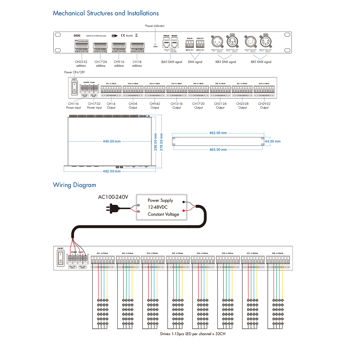 GloboStar® 71570 D32C SKYDANCE DC DMX & RDM Dimmer High Speed Controller / Constant Current Decoder 32 Καναλιών DC 12-48V 32 x 700mA 34W – Max 22.5A 1075W – IP20 Μ48 x Π26 x Υ5cm – 5 Years Warranty