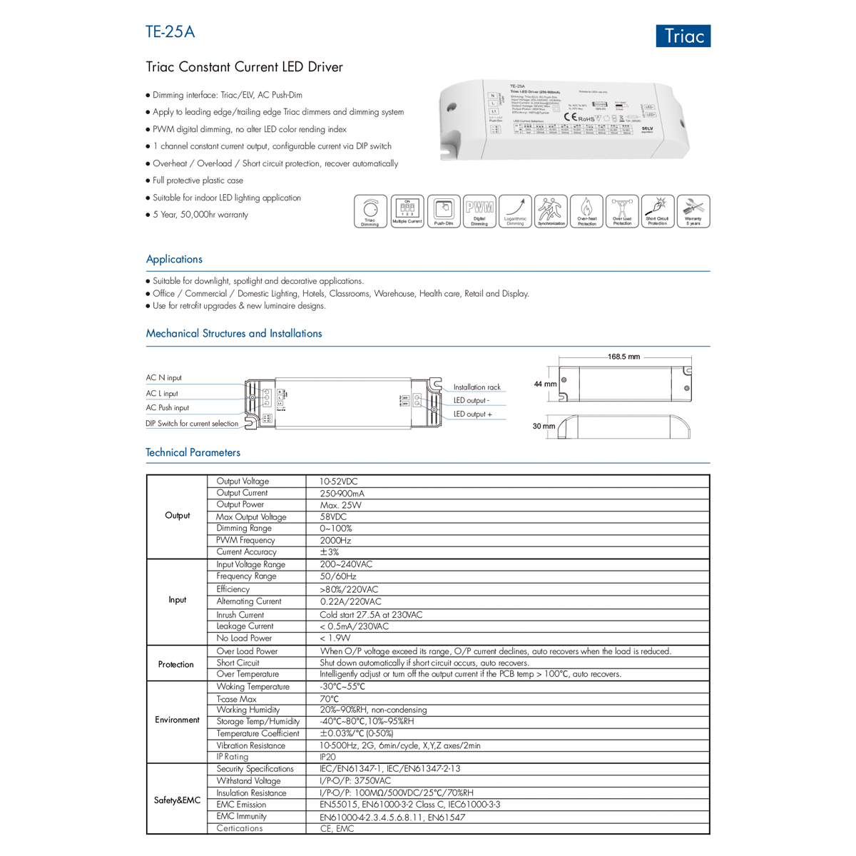 GloboStar® 73134 TE-25A SKYDANCE AC Triac Dimmable Constant Current LED Driver 1 Κανάλι AC 200-240V 1 x 0.22A 25W – Max 0.22A 25W – IP20 Μ17.5 x Π4.4 x Υ3cm – 5 Χρόνια Εγγύηση