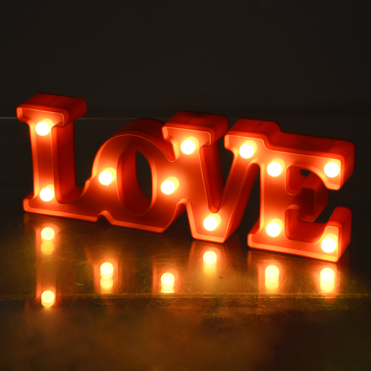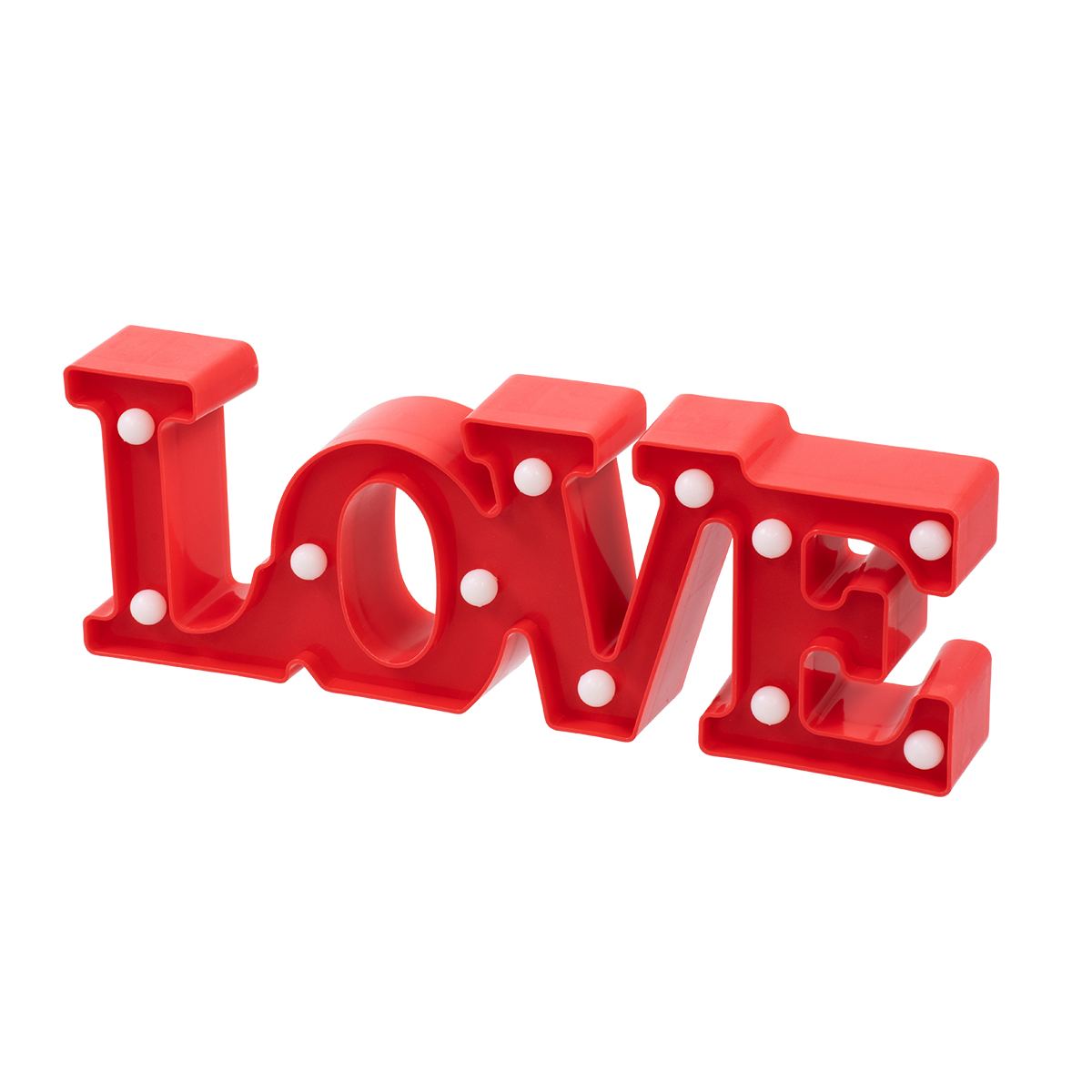 GloboStar® 76548 Κόκκινο Μοντέρνο Επιτραπέζιο Διακοσμητικό Φωτιστικό LED Σήμανσης LOVE 2W με Διακόπτη On/Off Μπαταρίας 2xAAA (Δεν Περιλαμβάνονται) Θερμό Λευκό 2700K