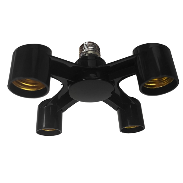 GloboStar® 78978 Πλαστικός Αντάπτορας Μετατροπέας από 1xE27 Ντουί σε 4xE27 Ντουί Μαύρο