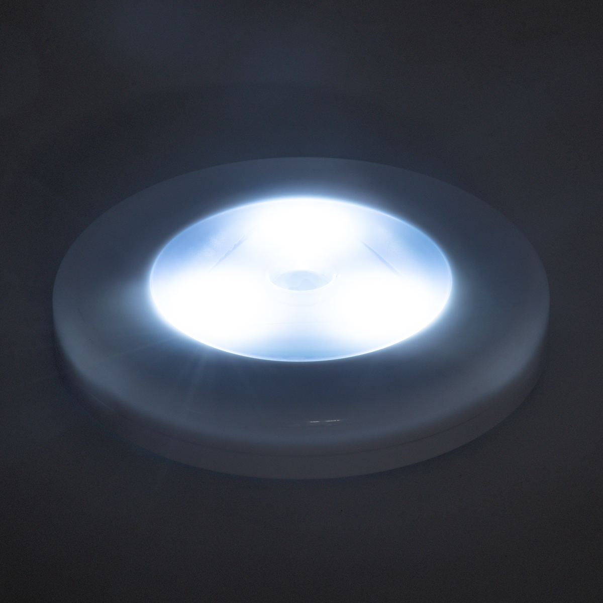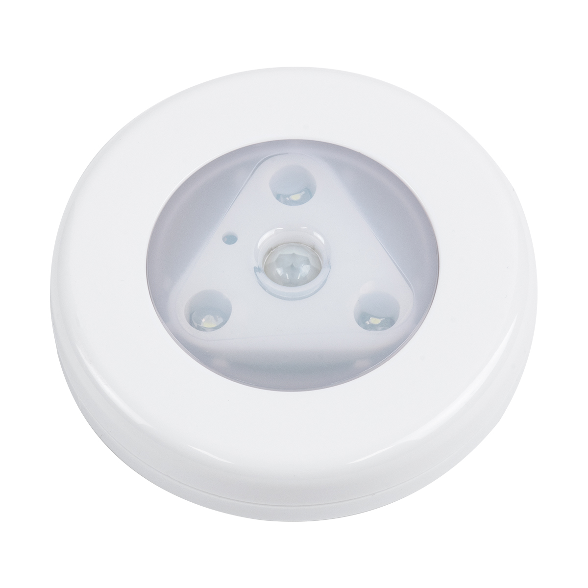 GloboStar® 79004 Φωτιστικό Νυκτός Μπαταρίας 3xAAA (Δεν Περιλαμβάνεται) LED SMD 5050 1W 80lm με Αισθητήρα Κίνησης και 3M Διπλής Όψης Αυτοκόλλητη Ταινία Αδιάβροχο IP44 Ψυχρό Λευκό 6000K D7.5 x H1.5cm