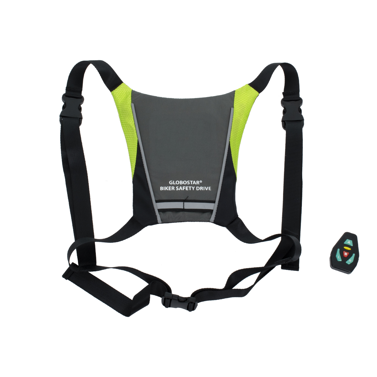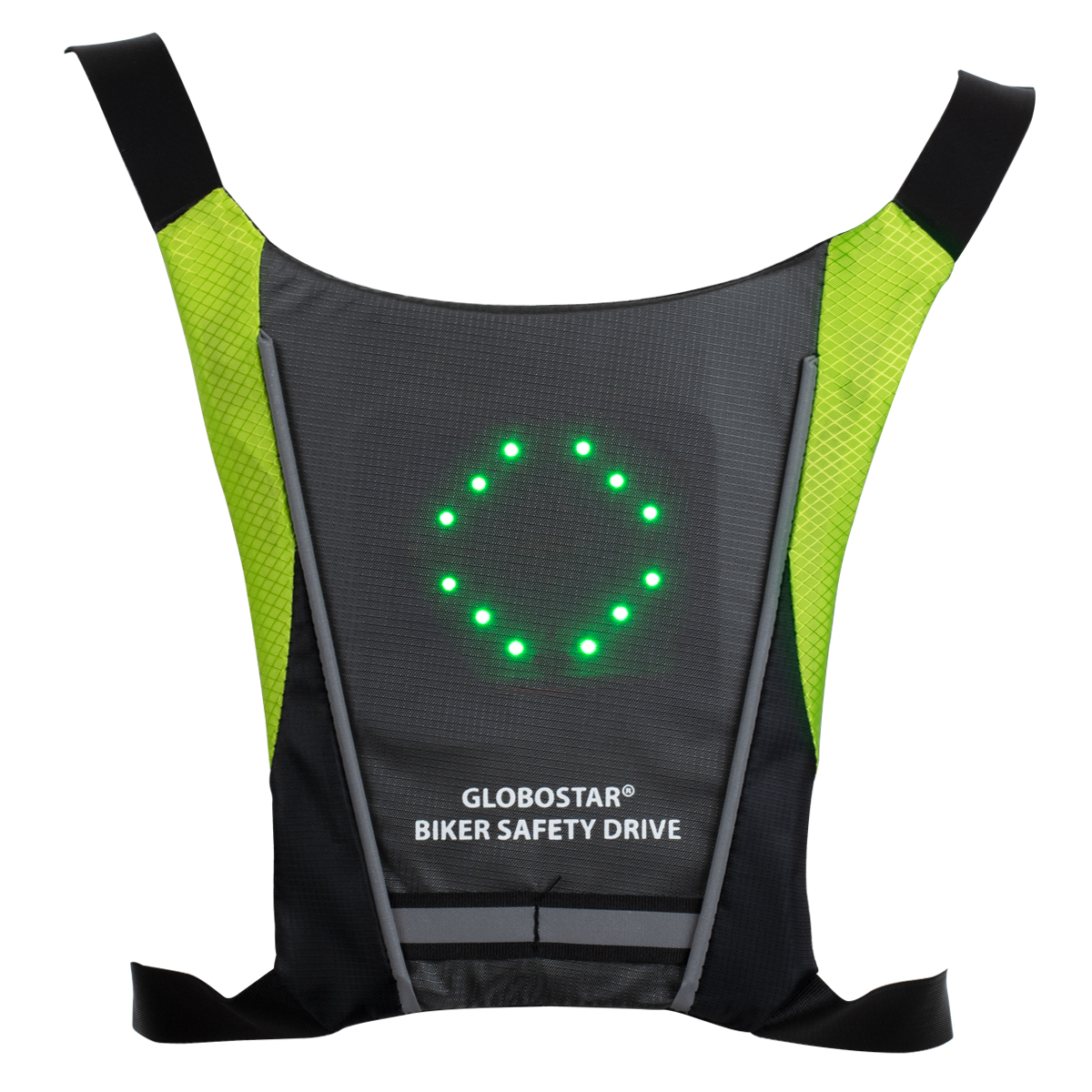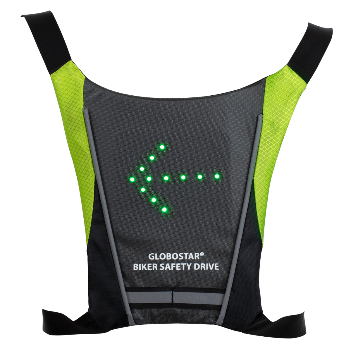 GloboStar® 79070 Γιλέκο Ασφαλείας Φωσφοριζέ Αντανακλαστικό για Ποδηλάτες & Runners με Φωτεινή Σήμανση LED – Ενσωματωμένη Μπαταρία 650mAh DC 5V Επαναφορτιζόμενο με Καλώδιο Τροφοδοσίας USB & Ασύρματο Χειριστήριο – Μαύρο & Λαχανί Φωσφοριζέ Αδιάβροχο IP65