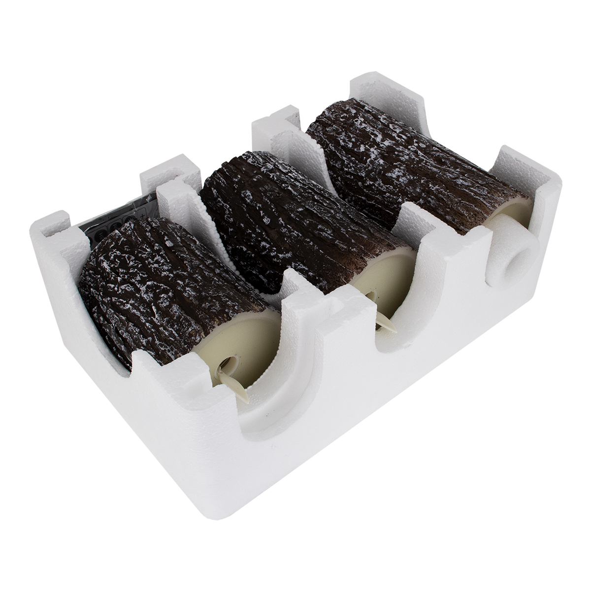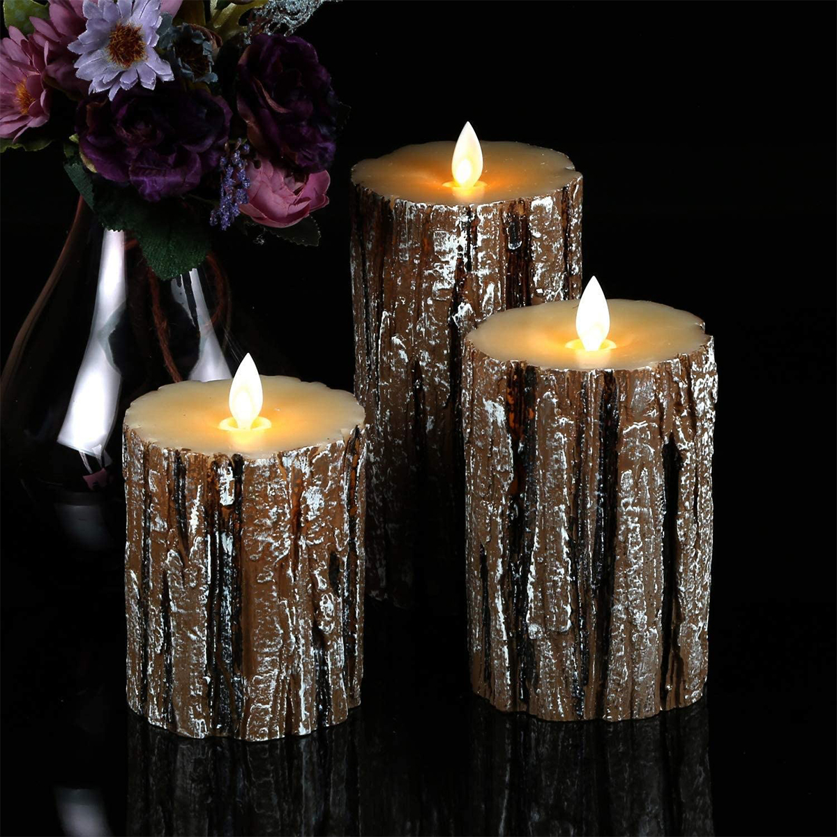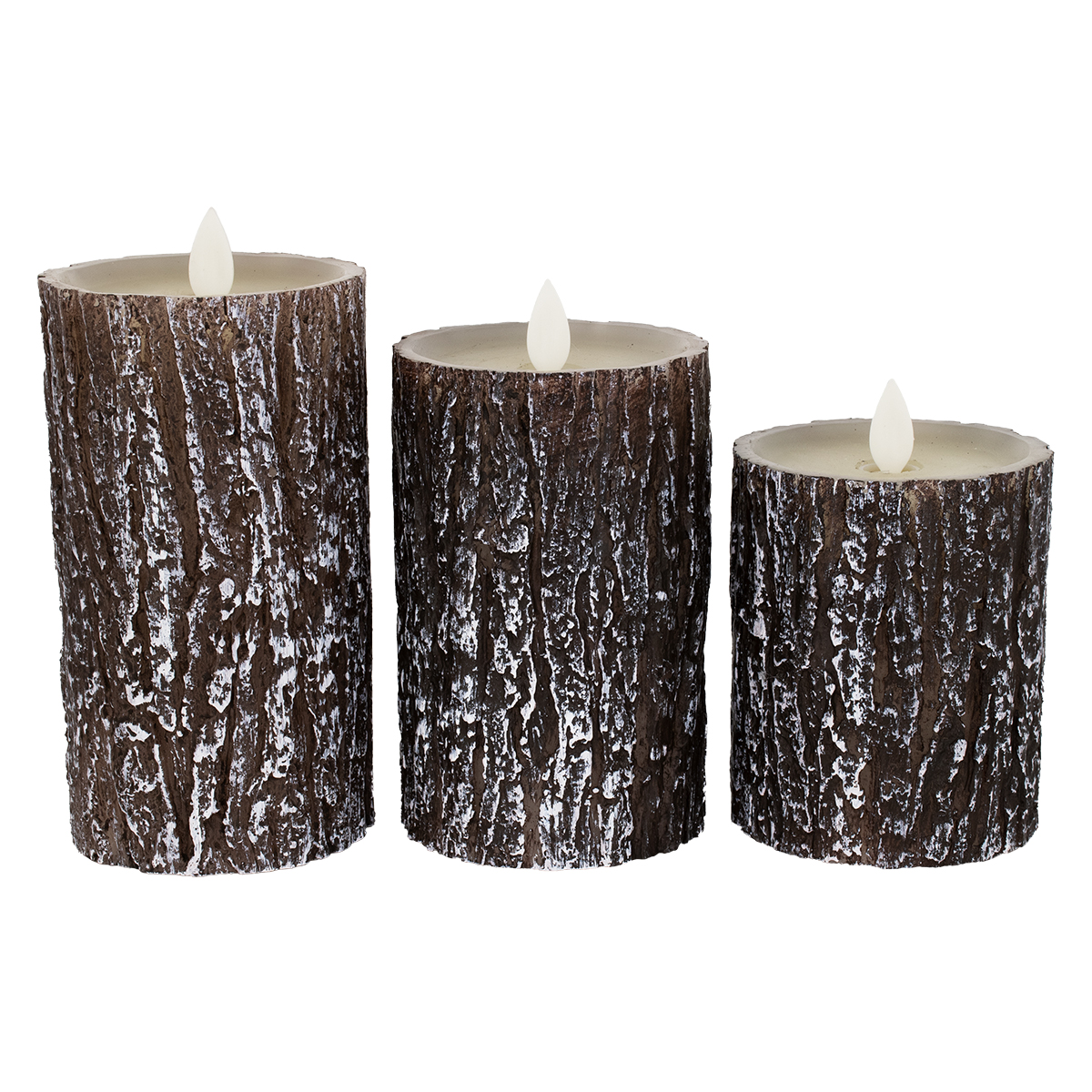 GloboStar® 79562 ΣΕΤ 3 Διακοσμητικών Realistic Κεριών Παραφίνης με LED Εφέ Κινούμενης Φλόγας – Μπαταρίας & Ασύρματο Χειριστήριο IR Καφέ Σχέδιο Κορμός Δέντρου Θερμό Λευκό 3000K Dimmable