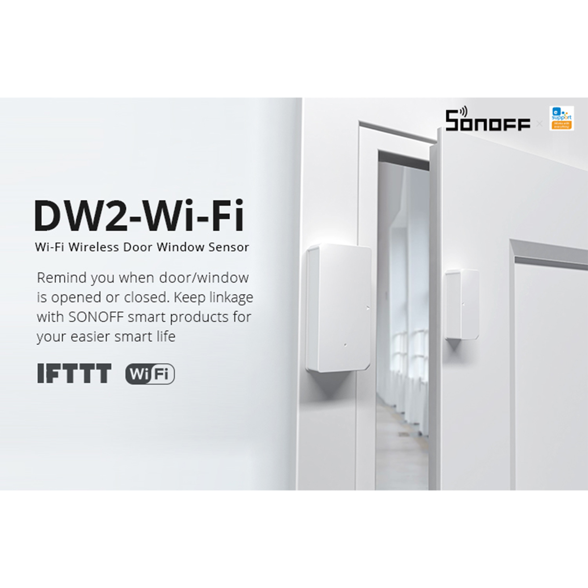 Extra Informations – Επιπλέον Πληροφορίες : Wi-Fi Wireless Door Window Sensor Remind you when door/window is opened or closed. Keep linkage with SONOFF smart products for your easier smart life No gateway required. The sensor is paired with APP via Bluetooth and is controlled on APP via Wi-Fi Worry about leaving your door or window open /closed? View instantly the status of home on APP The sensor will send you a push notification immediately if someone is detected to open your door or window Add SONOFF camera or an unused smartphone, and you can view what’s going on in your home not just receive the alert notification when the door is opened Want the hallway to light up when you walk into the door and light off when you walk out the door? Simply connect the SONOFF switch or SONOFF light to the sensor and go