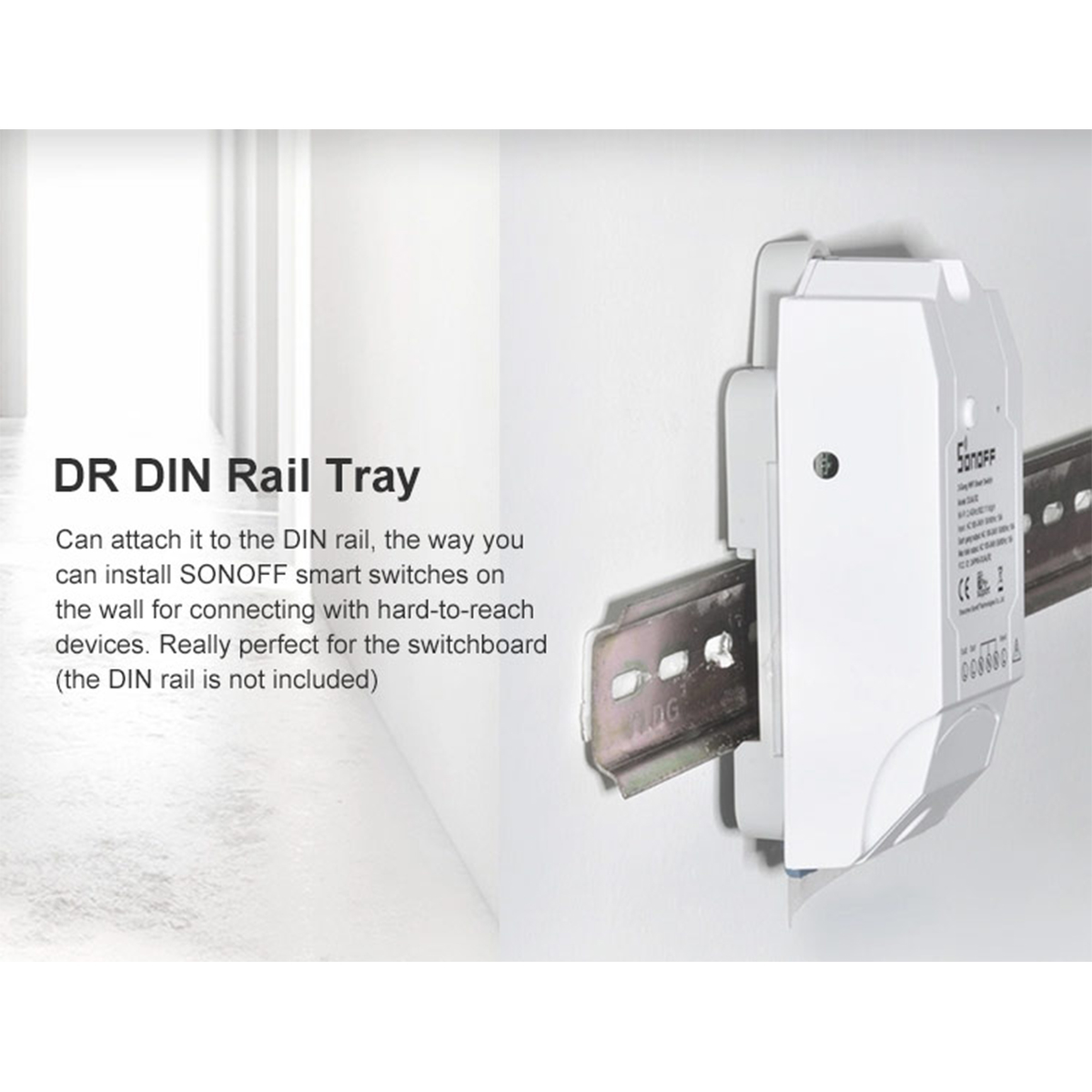 Extra Informations – Επιπλέον Πληροφορίες : As you know, most of the SONOFF products are not DIN rail mounted, which makes it difficult to put the Sonoff products into the switchboard. Now we launch another inexpensive and practical accessory – SONOFF DR – DIN Rail Tray. We provide this product just to let our users easily install the Sonoff switches to their switchboard. SONOFF DR can work with most of our SONOFF products, including SONOFF BASICR2/BASICR3, RFR2/RFR3, POWR2, TH10/16, DUALR2.