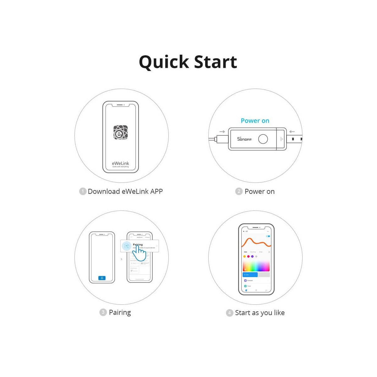 GloboStar® 80098 SONOFF L3-5M RGB Smart LED Strip Light WiFi 2.4GHz 90 SMD/5M 5050 5m Roll & Power Adapter DC 5V Max 10W