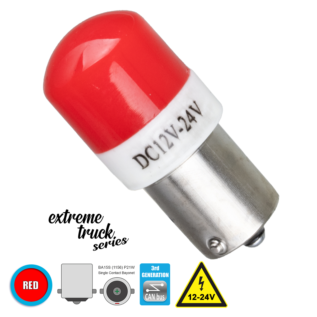 GloboStar® 1156 – BA15S – P21W 81266 Λάμπα Αυτοκινήτου & Φορτηγού 3rd Generation Can-Bus Extreme Truck Series LED 6 SMD 3030 3W 360lm 360° DC 12-24V IP20 Κόκκινο