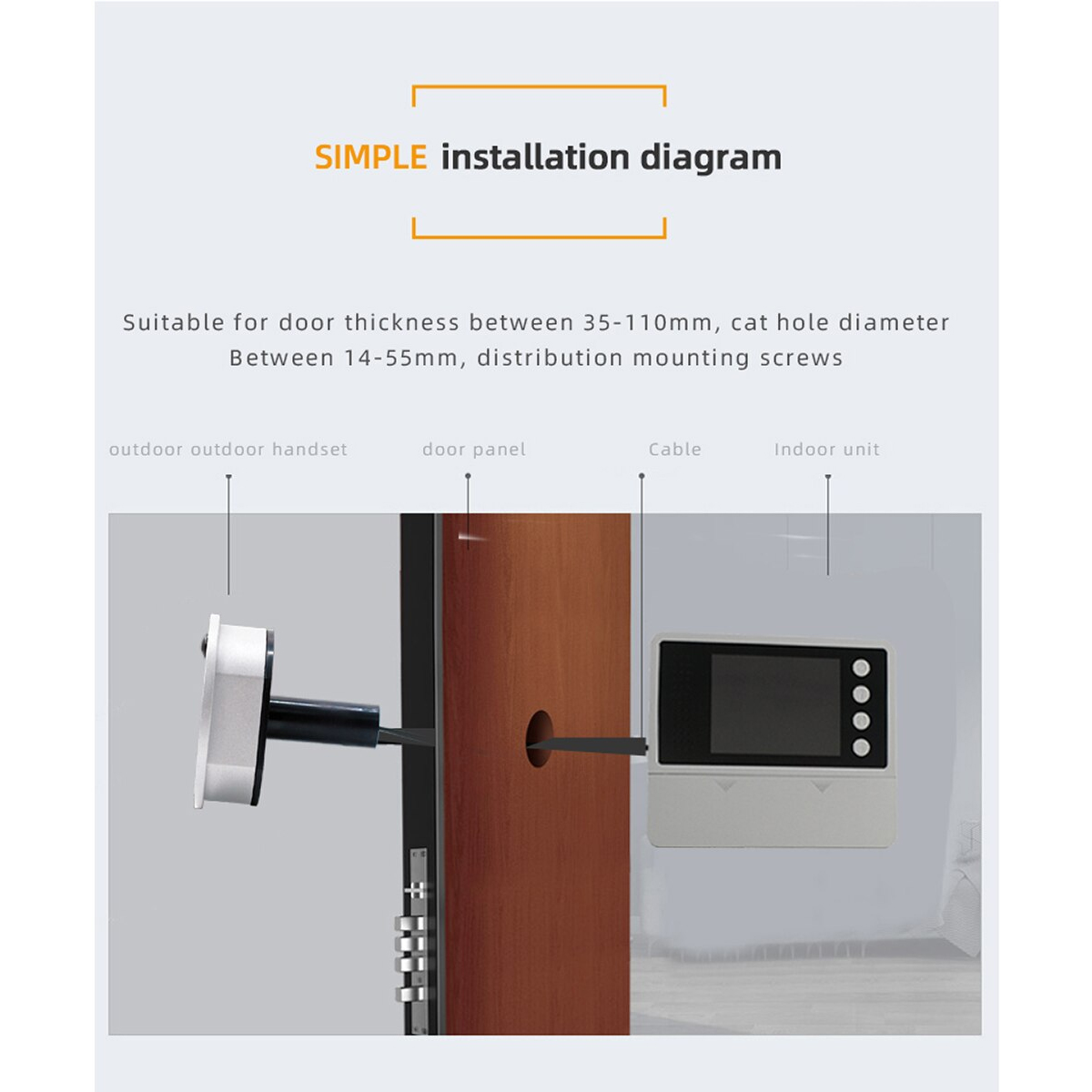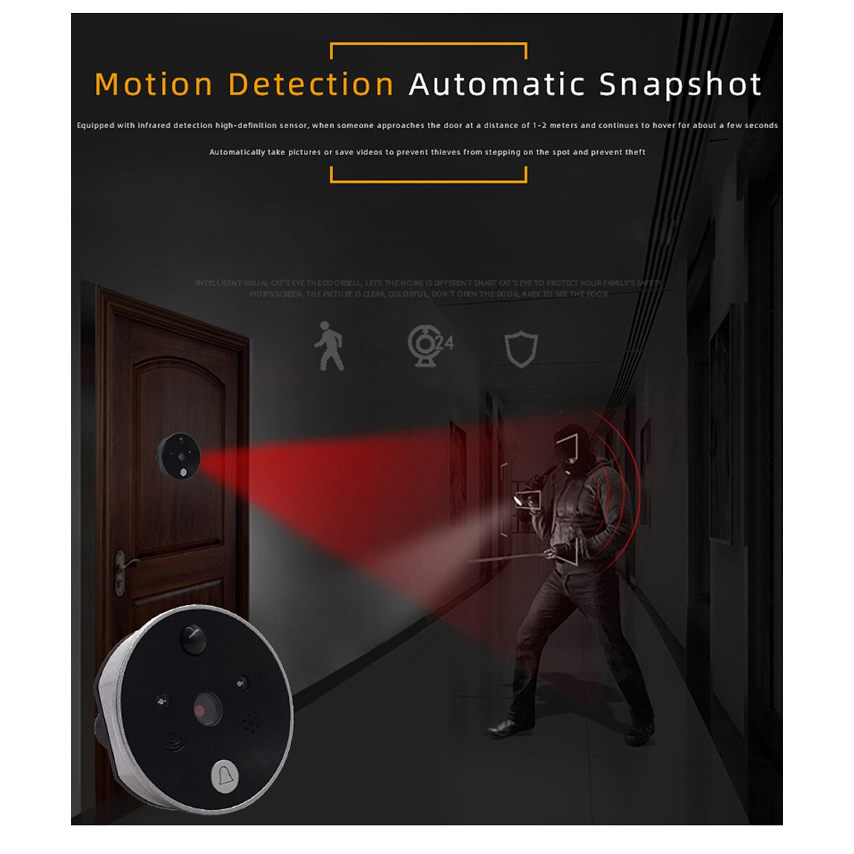 GloboStar® 86017 Ψηφιακή Έξυπνη Camera Εξώπορτας 90° Μοιρών με Έγχρωμη Οθόνη 2.8″ Inches – Νυχτερινή Όραση με LED IR – Κουδούνι – Εσωτερική Μνήμη Αποθήκευσης – Λειτουργεί με 4 Μπαταρίες AAA