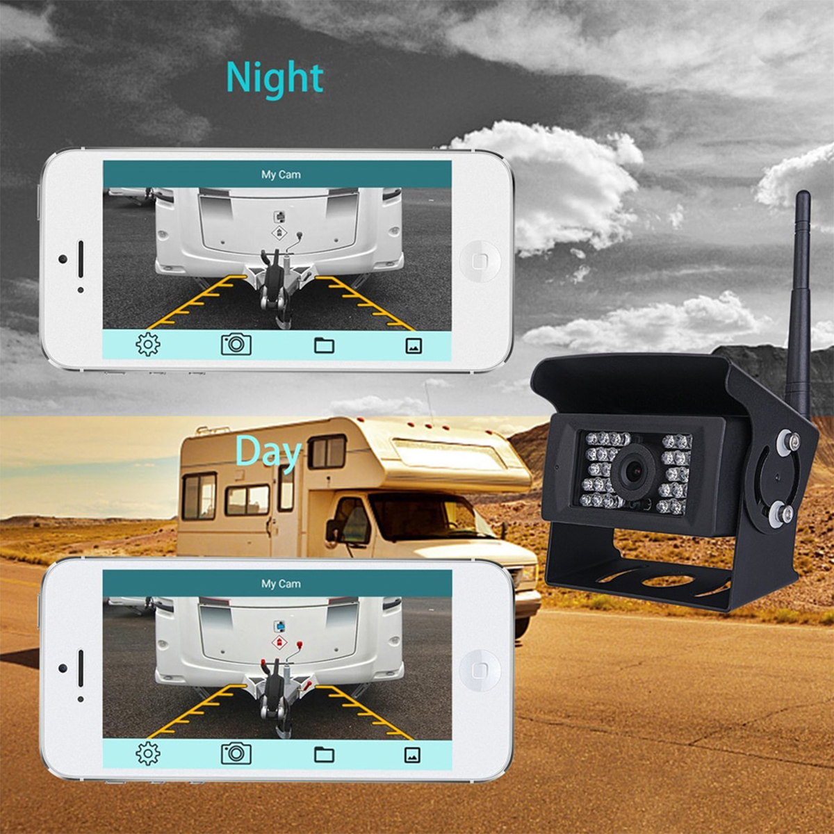 Αδιάβροχη WiFi κάμερα οπισθοπορείας 12v/24v TRUCK κατάλληλη για φορτηγά, λεωφορεία, νταλίκες, χωματουργικά μηχανήματα κλπ. Ειδική κατασκευή ώστε να είναι ανθεκτική σε δύσκολες καιρικές συνθήκες. Διαθέτει μεταλλική ρυθμιζόμενη βάση με οπές για εύκολη τοποθέτηση και κινούμενο σκίαστρο για την αποφυγή αντανάκλασης από τον ήλιο αλλά και για τη προστασία της κάμερας. Επίσης λειτουργεί με γωνία έως και 120° για μεγάλο εύρος απεικόνισης.