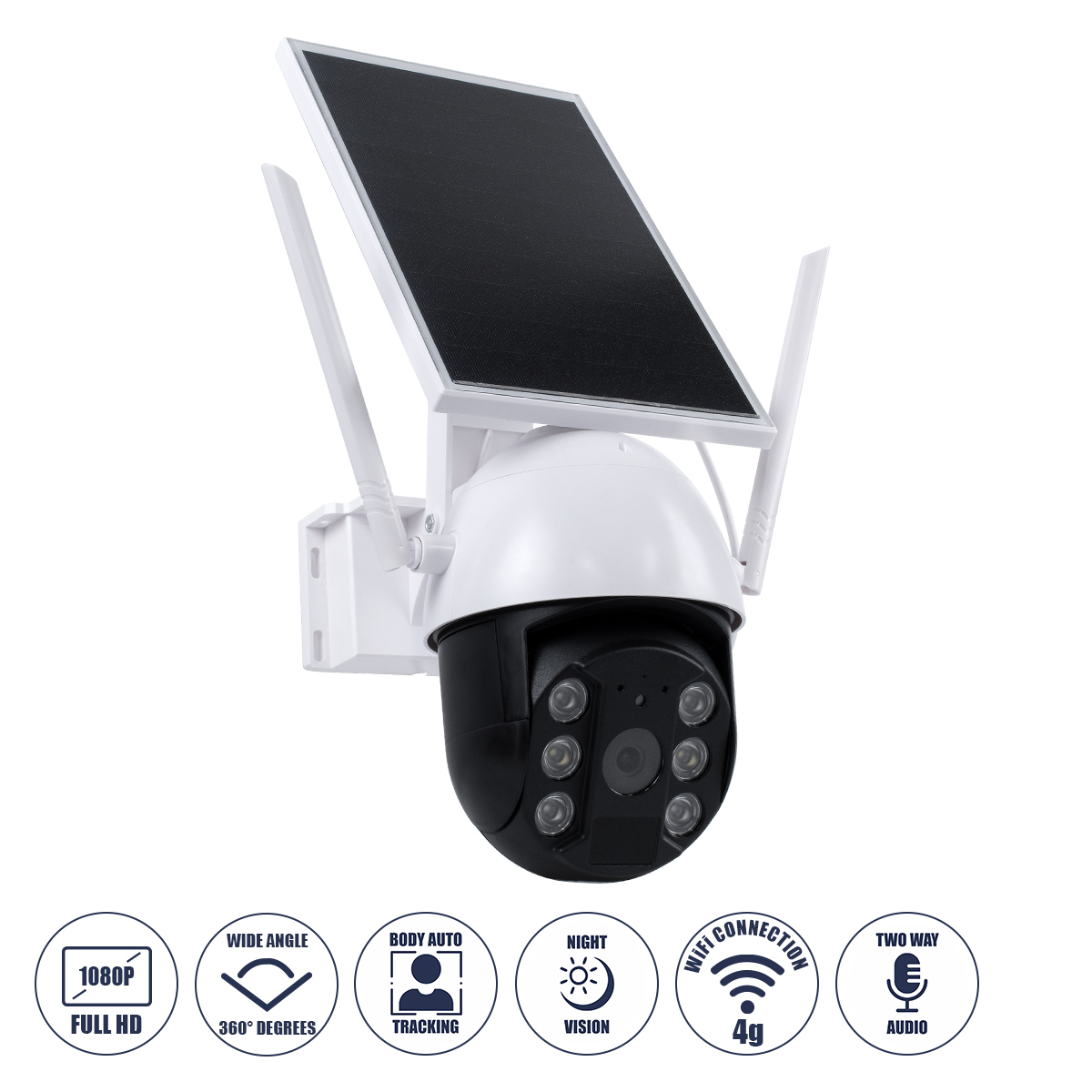 GloboStar® 86029 Αυτόνομη Ηλιακή IP Camera 1080P 2MP WiFi 4G SIM CARD 360° Μοιρών – 3200mAh – Φωτοβολταϊκό Πάνελ – Νυχτερινή Όραση με LED IR – Ανιχνευτή Κίνησης – Νυχτερινή Λήψη – Αδιάβροχη IP66 – Λευκό