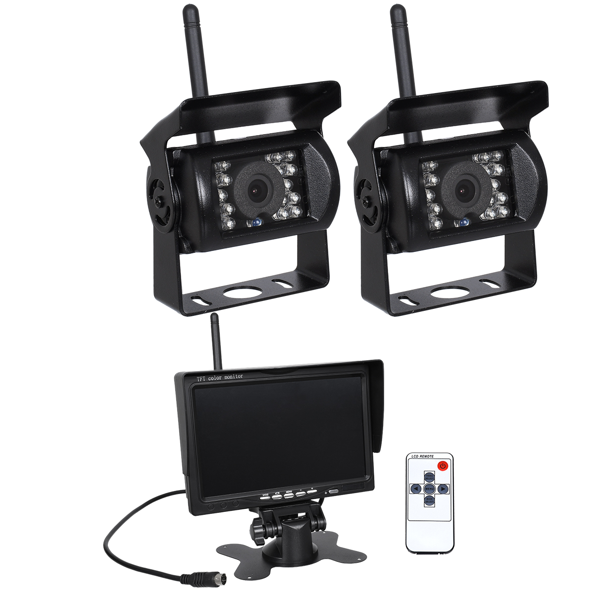 1, 2 x Ασύρματες κάμερες με 18 Led Universal Rearview + οθόνη TFT LCD 7 ιντσών.