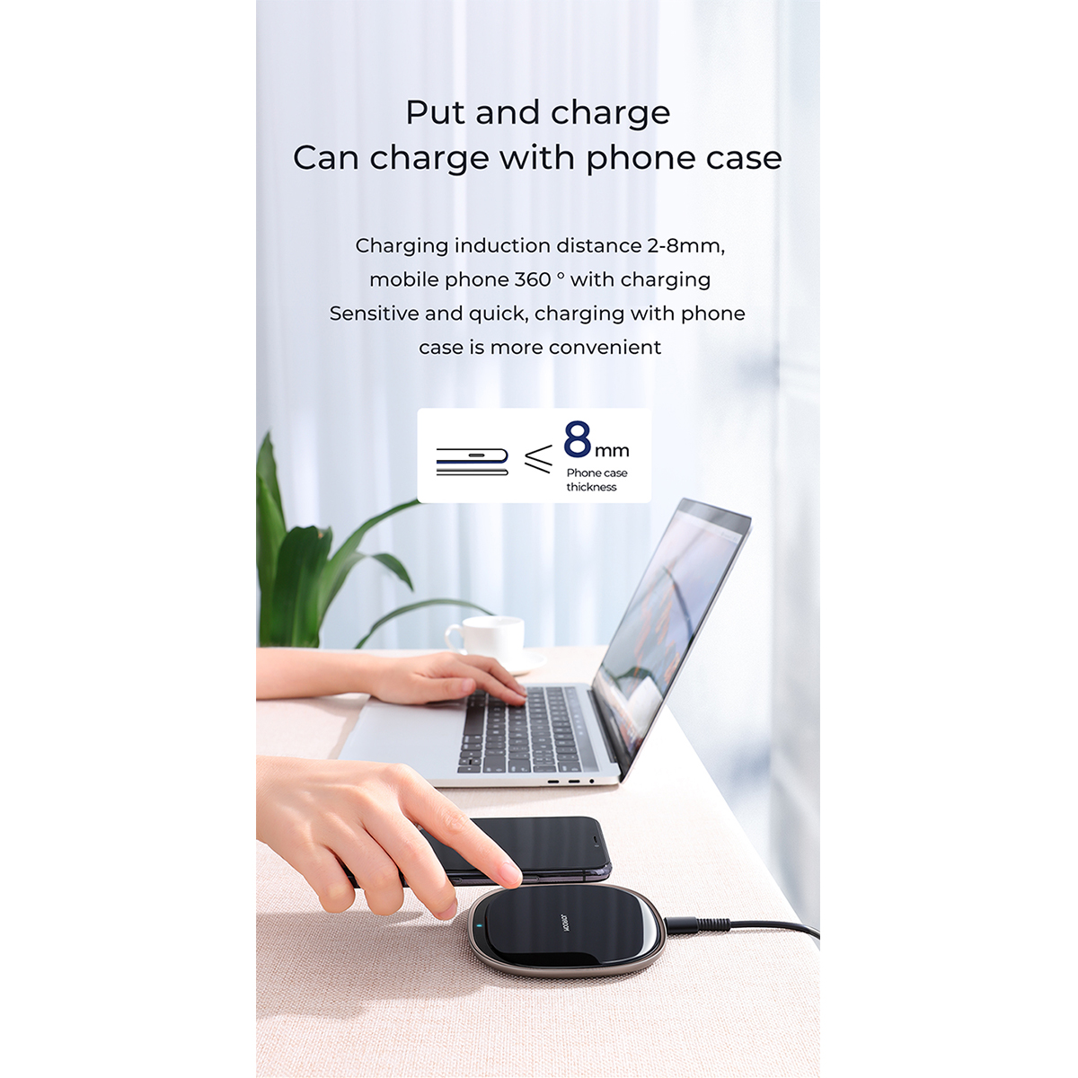 3. The charging induction distance is 2-8mm, and the mobile phone can be charged at any time with 360°. The induction is sensitive and rapid, and can charge with phone case.