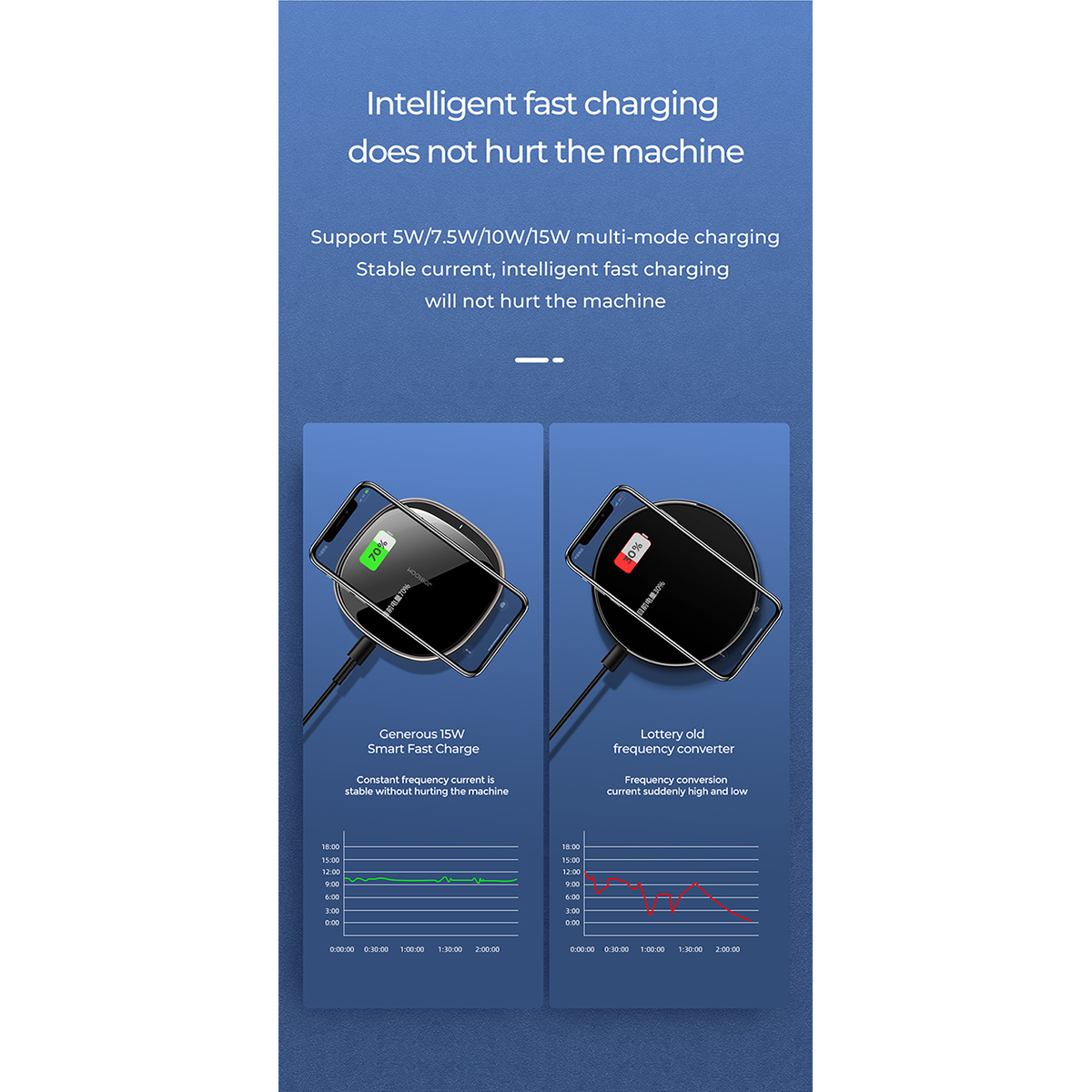 2. Support 5W/7.5W/10W/15W Multi-mode charging,Intelligent&safe fast charging for phone.