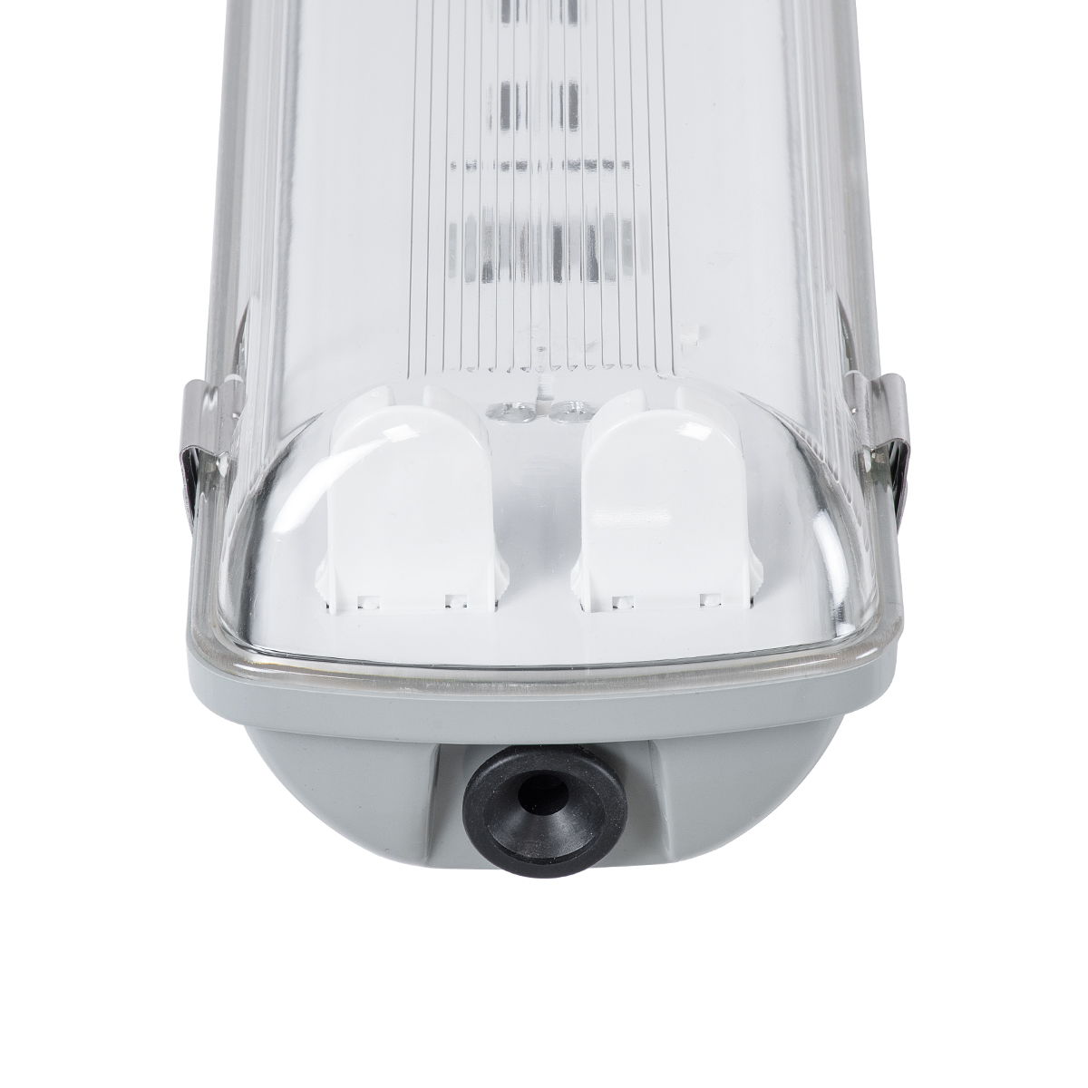 GloboStar® 90611 60cm Tri-Proof Πλαστικό PC Σκαφάκι με Μεταλλικά Clips για 2 x Λάμπες T8 Τύπου Φθορίου LED Τροφοδοσίας Ενός Άκρου Αδιάβροχο IP65