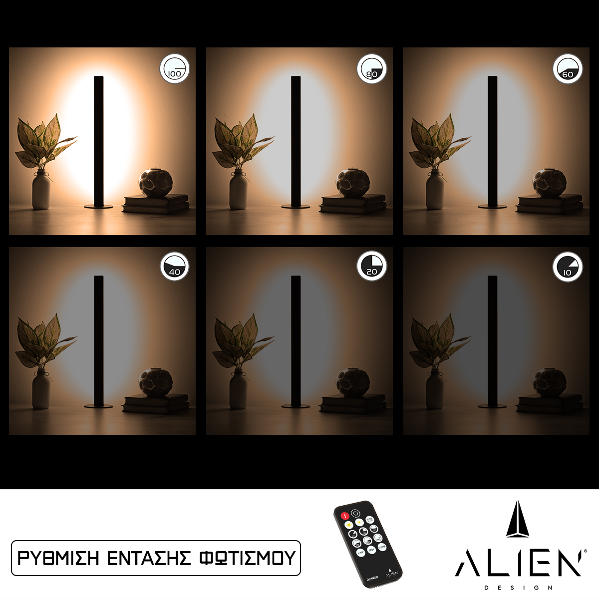 GloboStar® ALIEN-DIVA-BLACK-50-3 ALIEN Design DIVA Μοντέρνο Minimal Nordic Μεταλλικό Φωτιστικό Επιτραπέζιο – Πορτατίφ – Λαμπατέρ Μαύρο LED 8W 960lm με Ασύρματο Χειριστήριο RF & Dimmer IP20 Θερμό Λευκό 3000K Μ3 x Π1.6 x Υ50cm