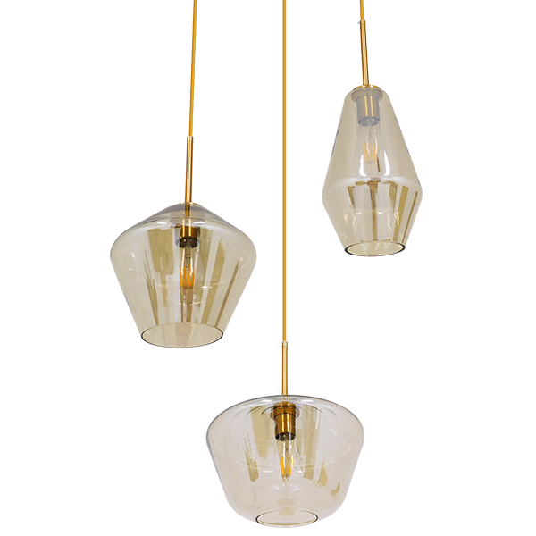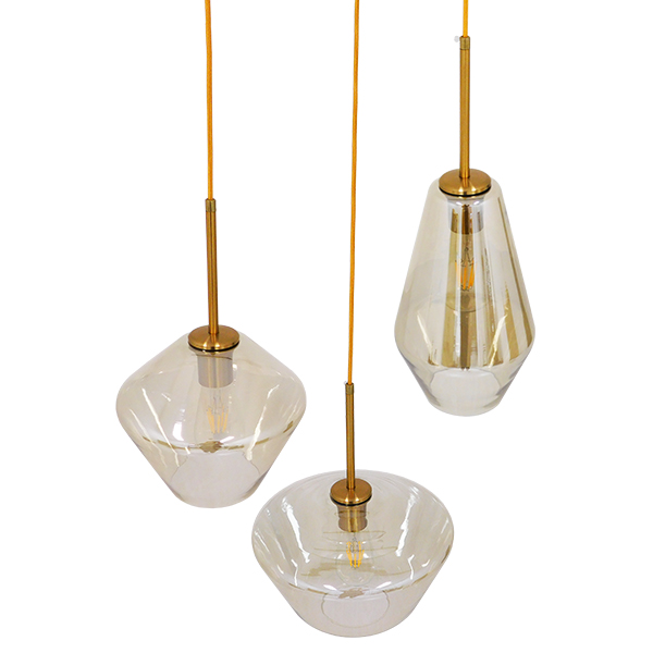GloboStar® AMARIS 00978 Μοντέρνο Κρεμαστό Φωτιστικό Οροφής Τρίφωτο Γυάλινο Φιμέ Μελί Φ50 x Υ30cm