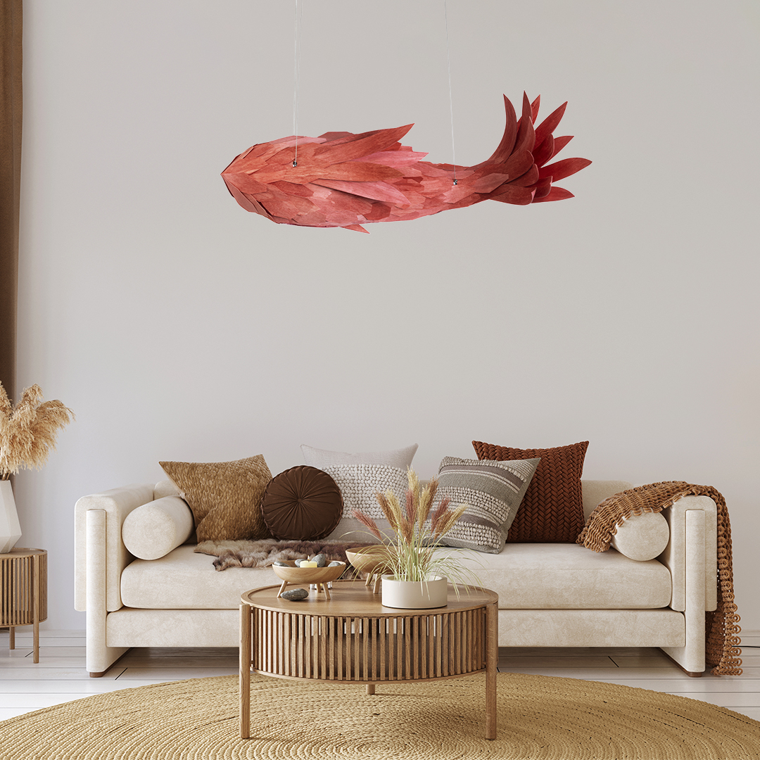 GloboStar® GOURAMI 02361 Μοντέρνο Κρεμαστό Φωτιστικό Φιγούρα Μονόφωτο 1 x E27 IP20 Κόκκινο Ξύλο – Μ100 x Π72 x Υ36cm