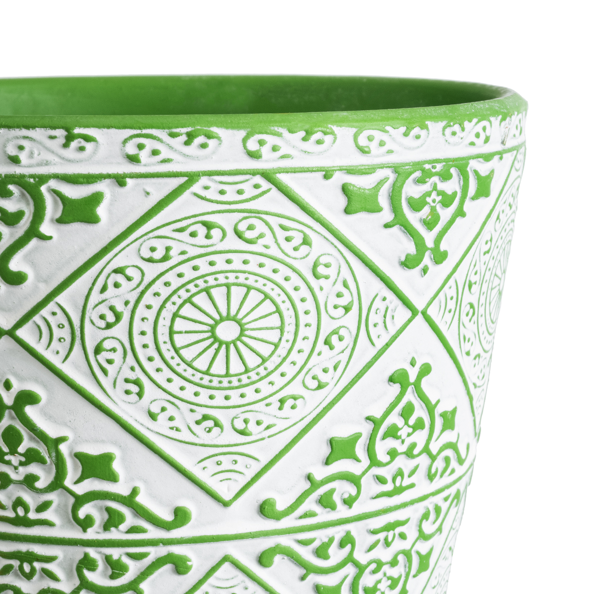 GloboStar® Artificial Garden ASWAN 20515 Διακοσμητικό Κεραμικό Κασπώ Γλάστρα – Flower Pot Λευκό με Πράσινο Φ14 x Υ13cm