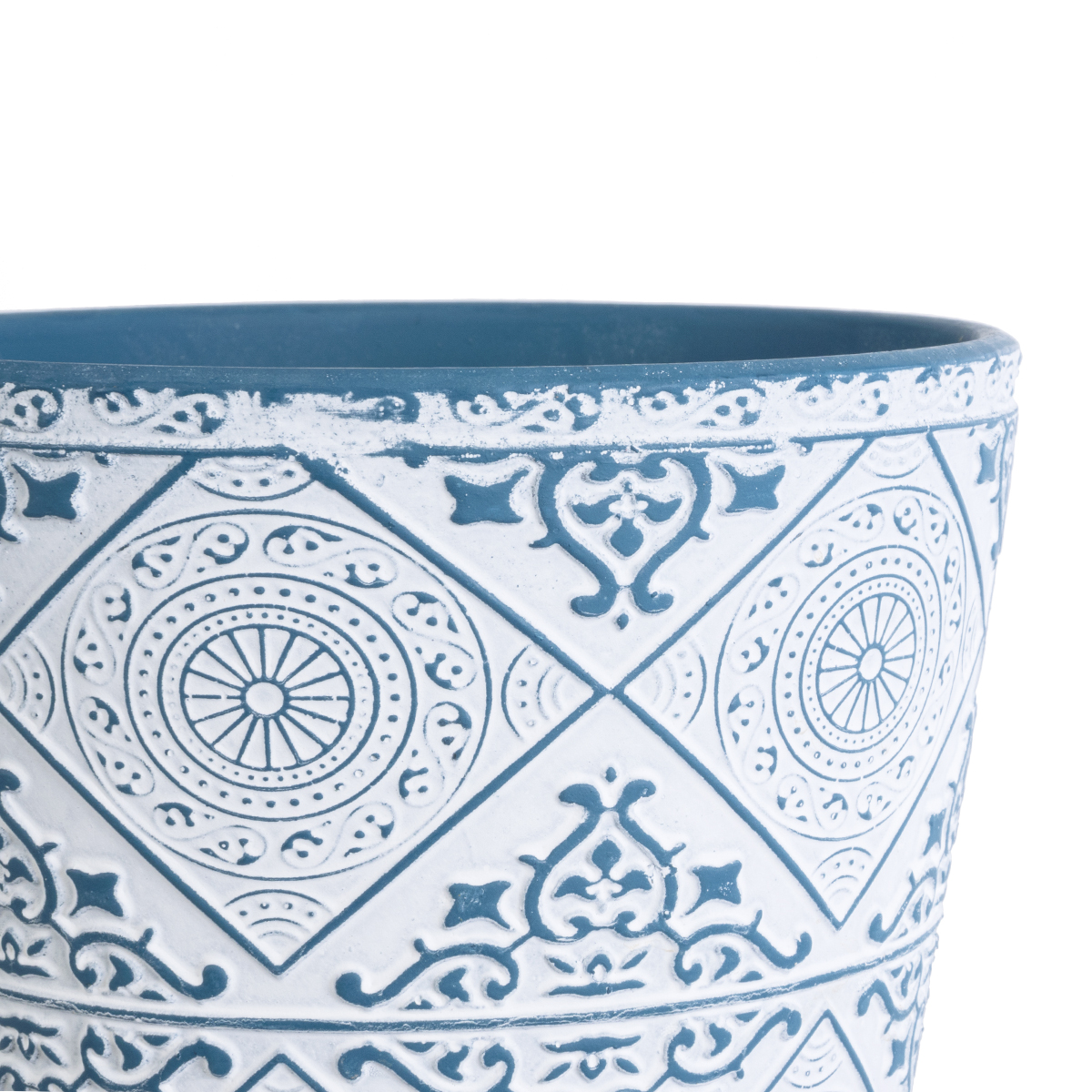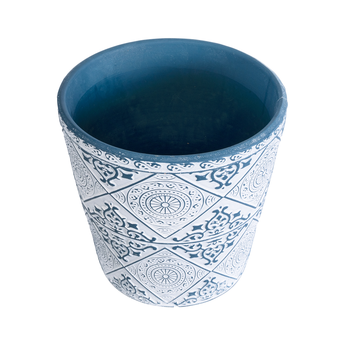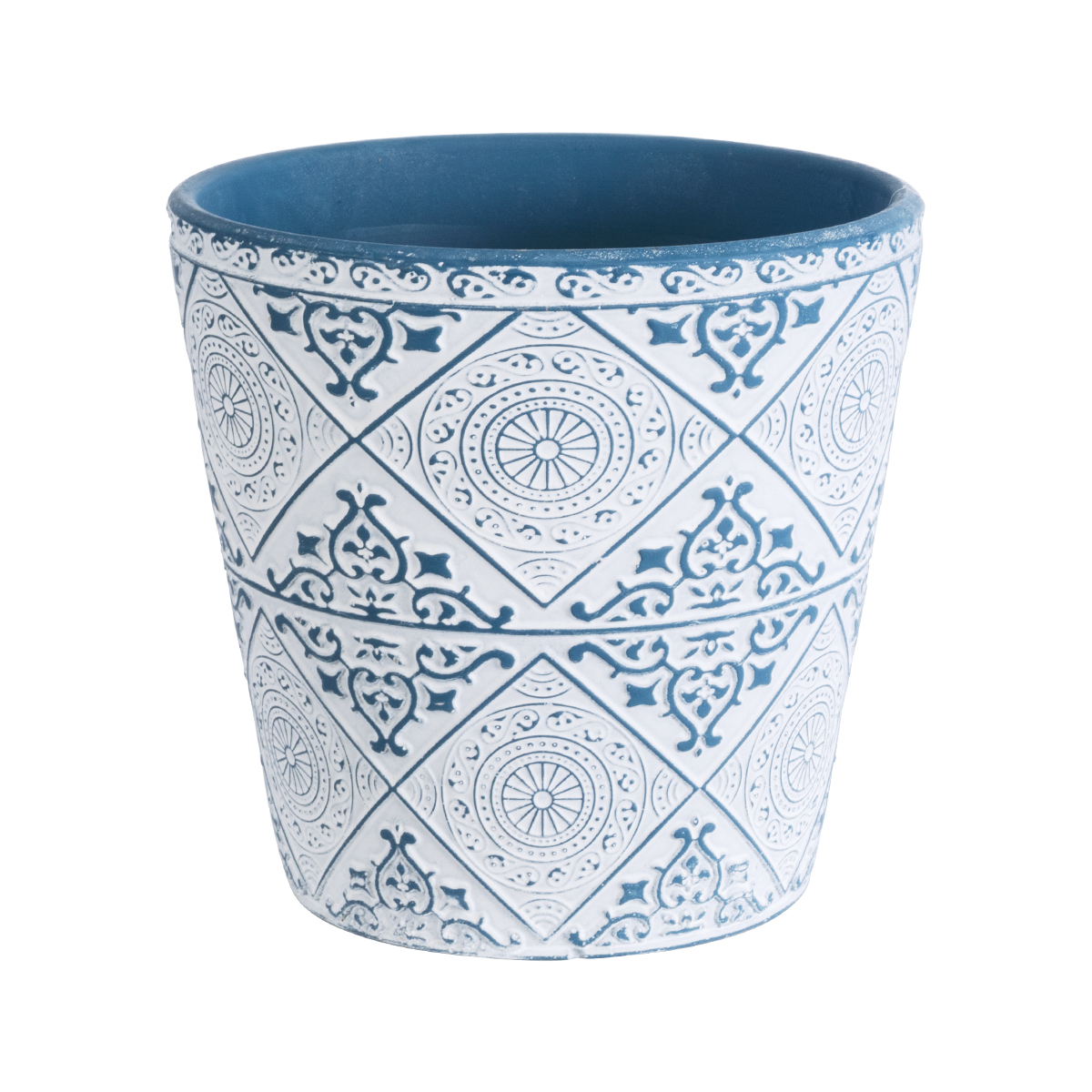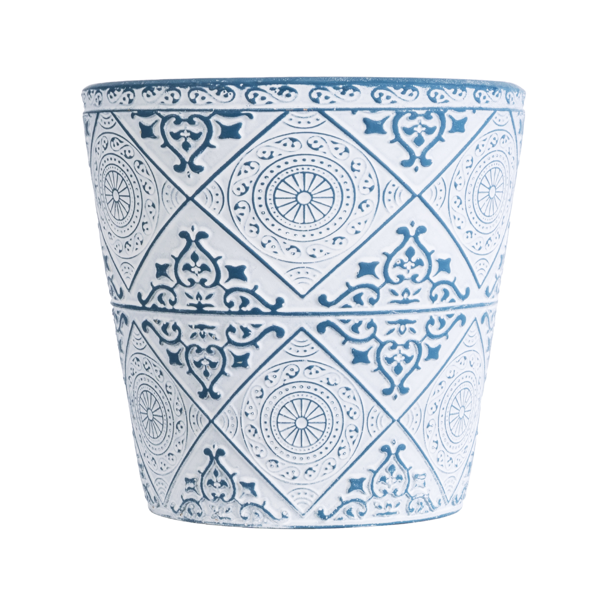 GloboStar® Artificial Garden CASABLANCA 20517 Διακοσμητικό Κεραμικό Κασπώ Γλάστρα – Flower Pot Λευκό με Μπλε Φ14 x Υ13cm