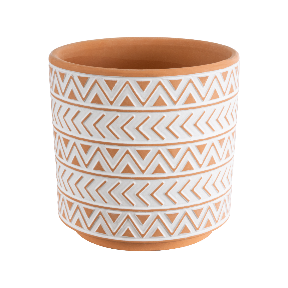 GloboStar® Artificial Garden INDIA 20497 Διακοσμητικό Κεραμικό Κασπώ Γλάστρα – Flower Pot Λευκό με Πορτοκαλί Φ14.5 x Υ13.5cm
