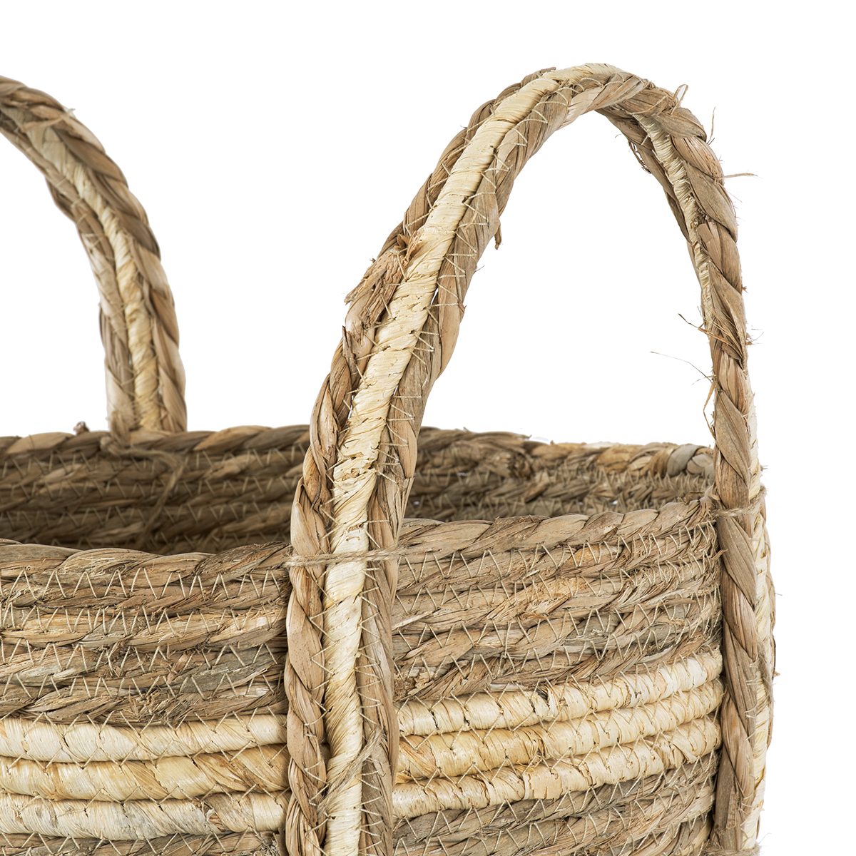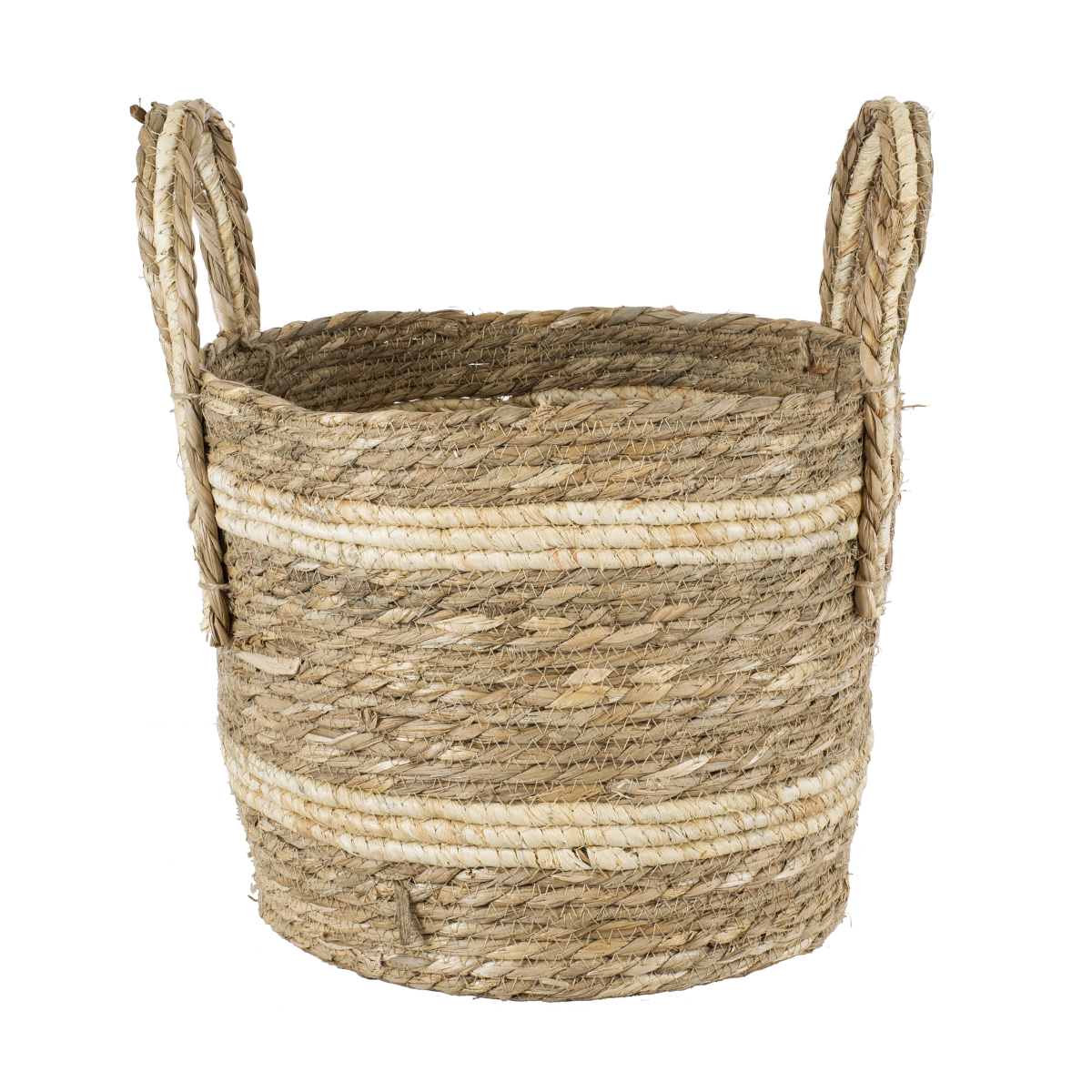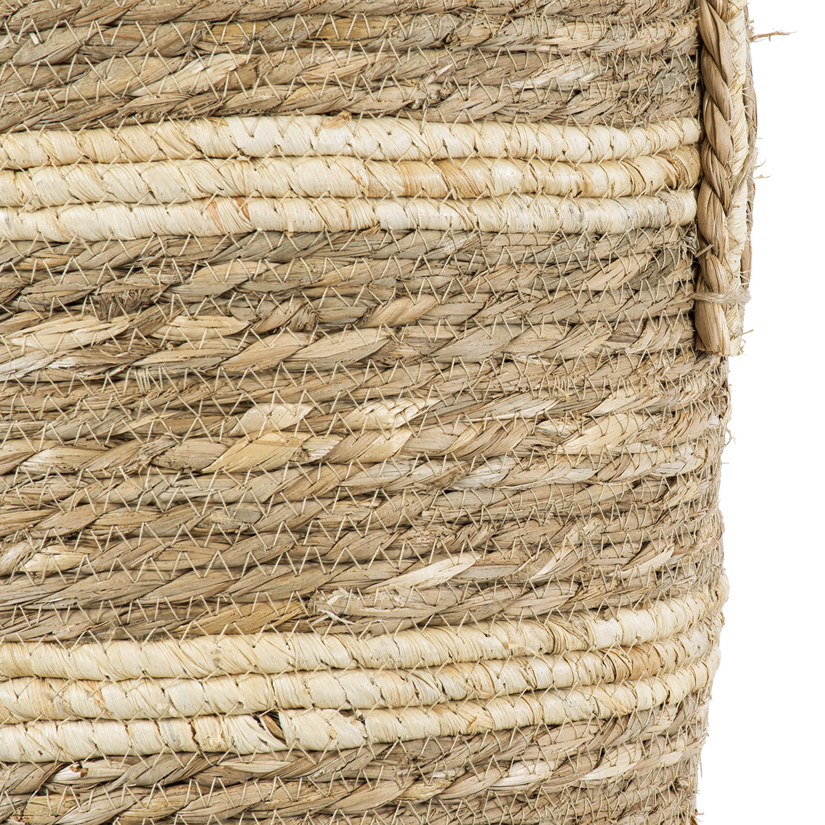 GloboStar® Artificial Garden NAXOS 20333 Διακοσμητικό Πλεκτό Καλάθι – Κασπώ Γλάστρα – Flower Pot Μπεζ με Καφέ Φ30cm x Υ26cm