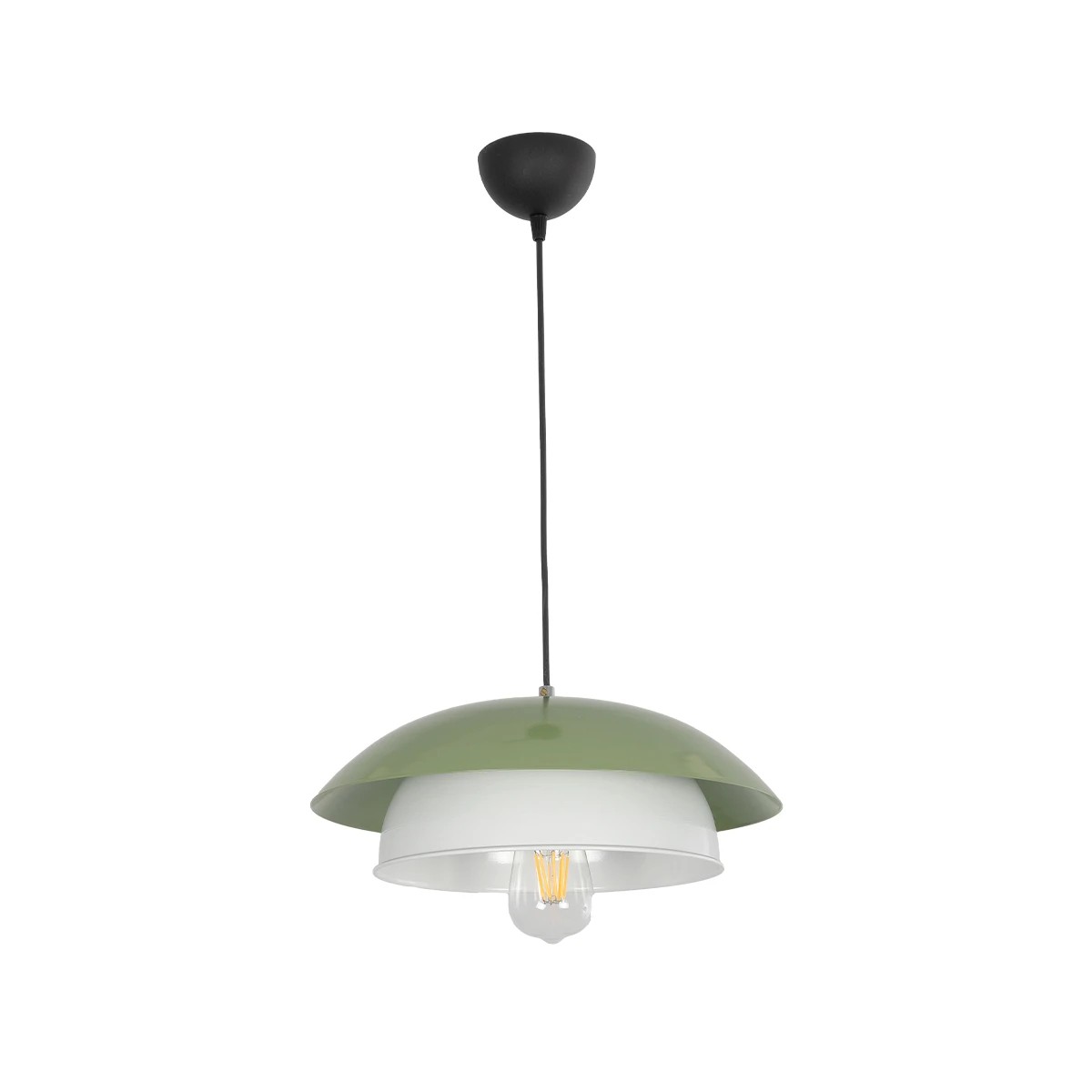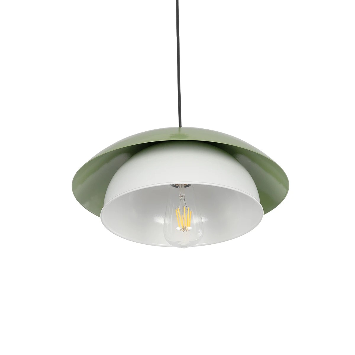 GloboStar® AURA 204-0119 Μοντέρνο Κρεμαστό Φωτιστικό Καμπάνα Μονόφωτο 1 x E27 IP20 Πράσινο & Λευκό Μέταλλο – Μ31 x Π31 x Υ27cm