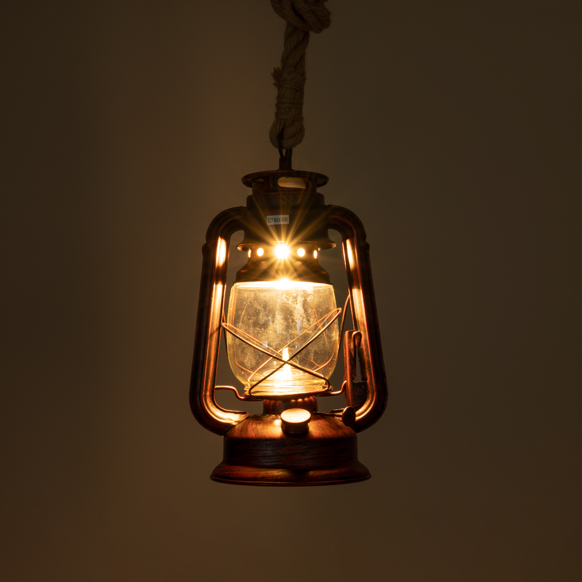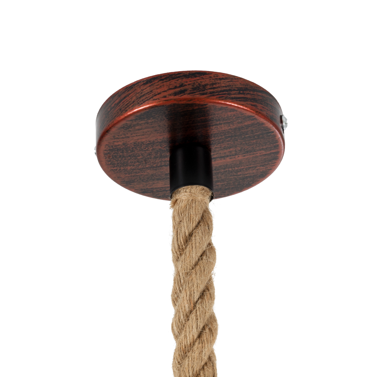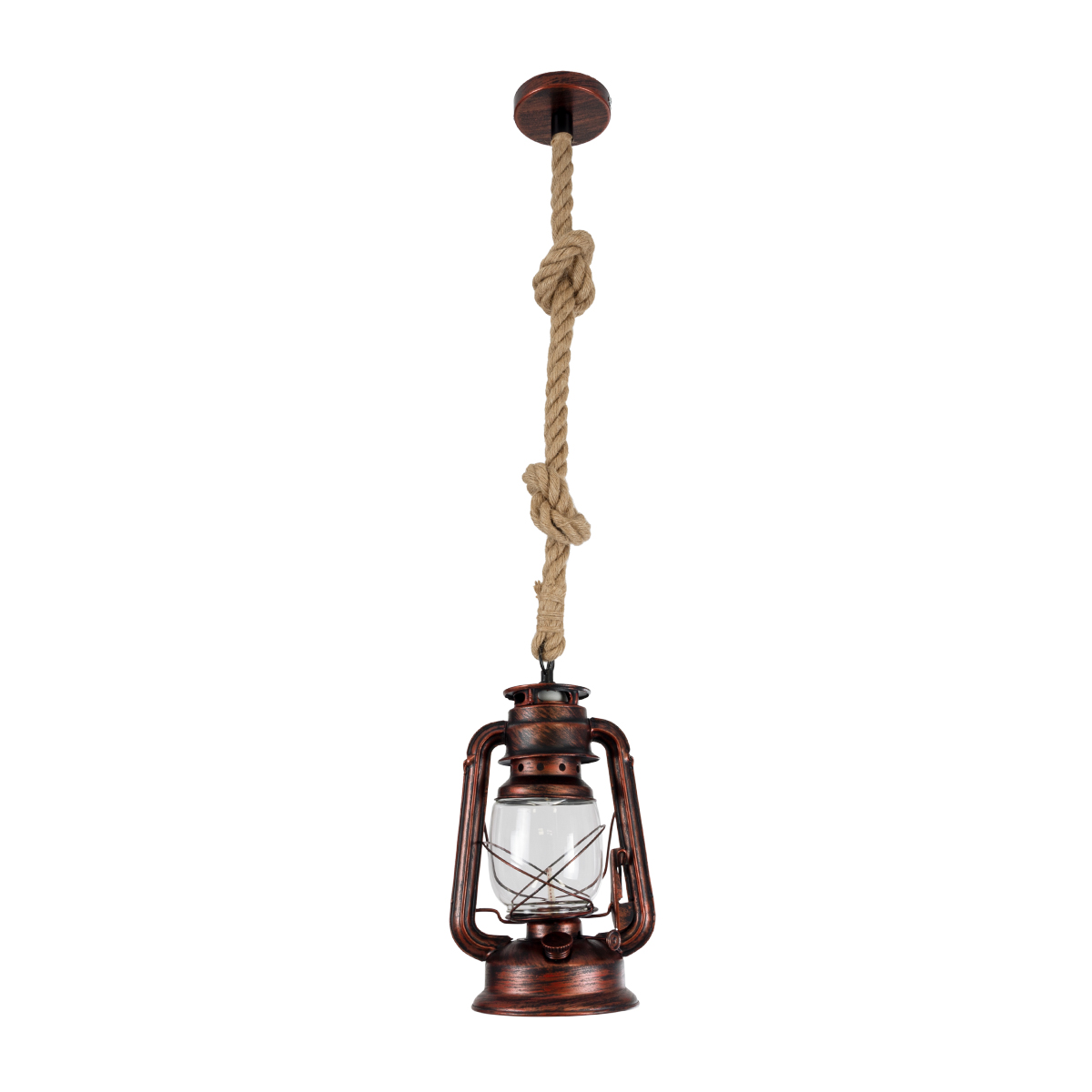 GloboStar® BARBAROSSA 01707 Vintage Κρεμαστό Φωτιστικό Ανάρτηση Μονόφωτο 1 x E27 IP20 Χάλκινο Μέταλλο, Διάφανο Γυαλί με Μπεζ Σχοινί – Μ18 x Π18 x Υ28cm