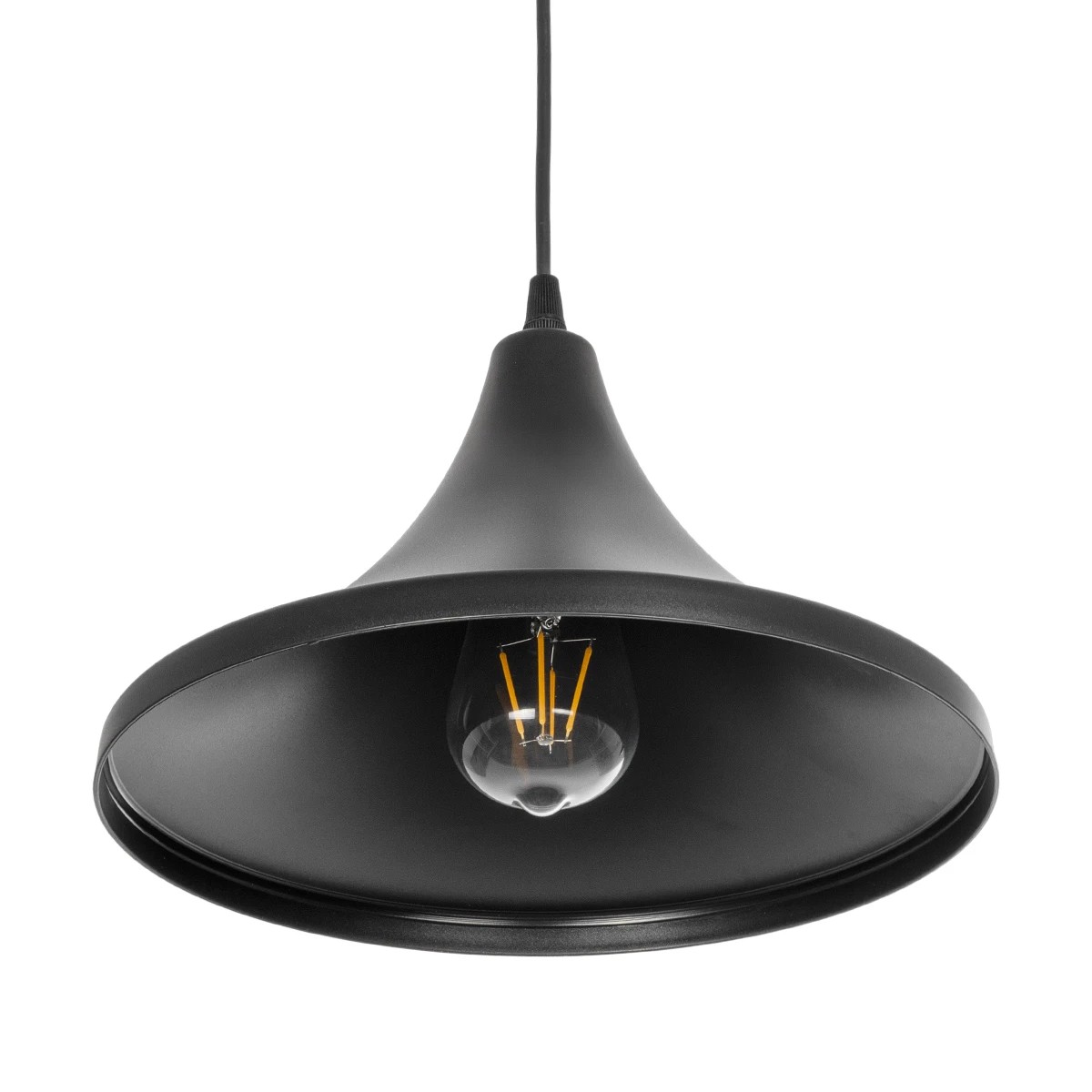 GloboStar® BELFRY 203-0078 Μοντέρνο Κρεμαστό Φωτιστικό Καμπάνα Μονόφωτο 1 x E27 IP20 Μαύρο Πλαστικό – Μ29.5 x Π29.5 x Υ21cm