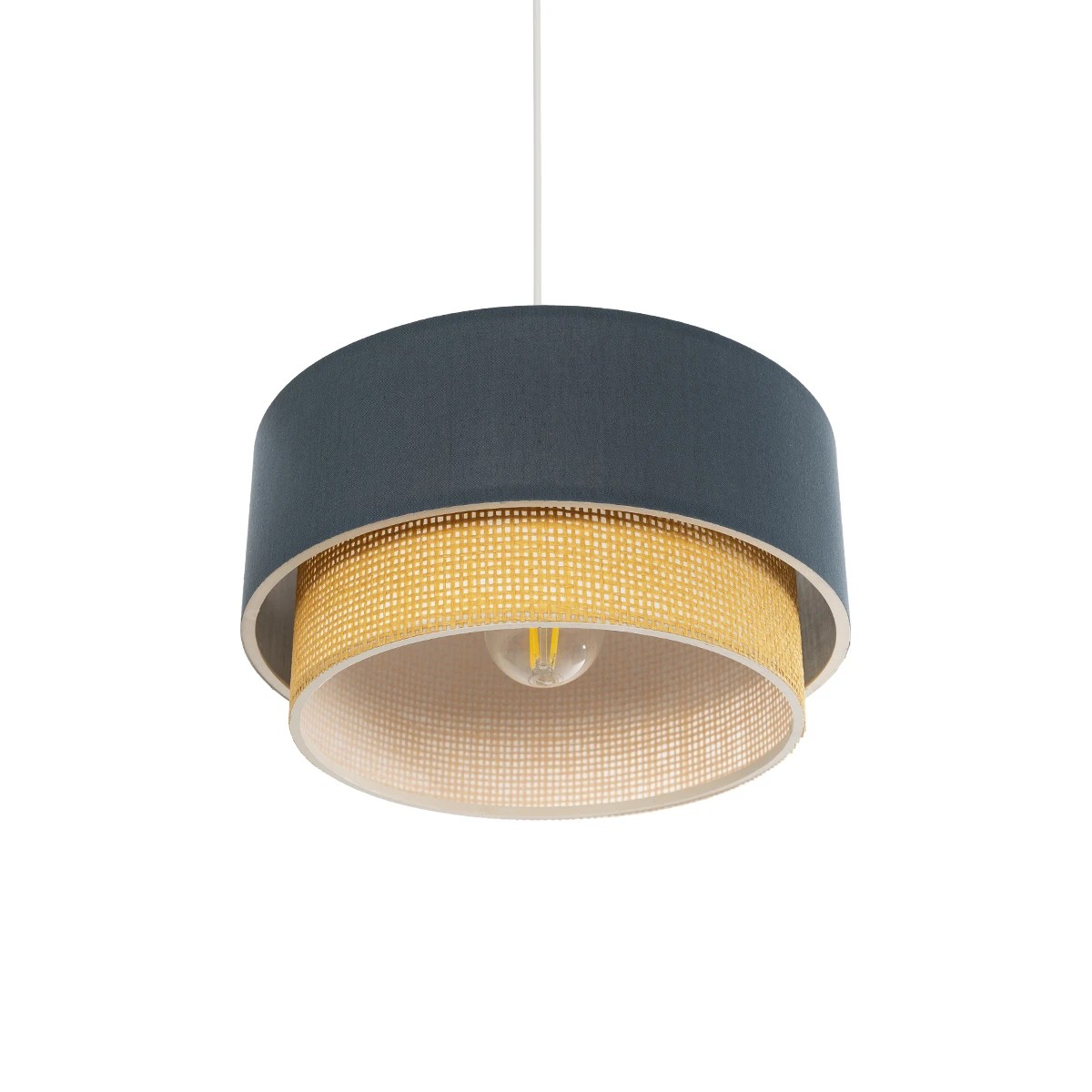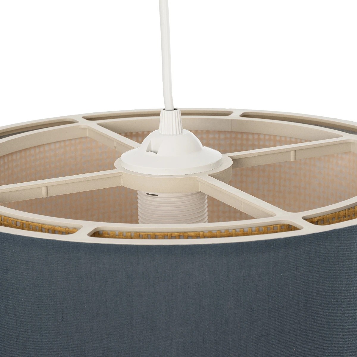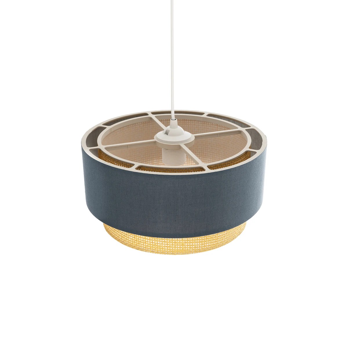 GloboStar® BIGGIE 204-0094 Μοντέρνο Κρεμαστό Φωτιστικό Kαπέλο Μονόφωτο 1 x E27 IP20 Μπλε Ύφασμα με Μπεζ Rattan – Μ30 x Π30 x Υ70cm