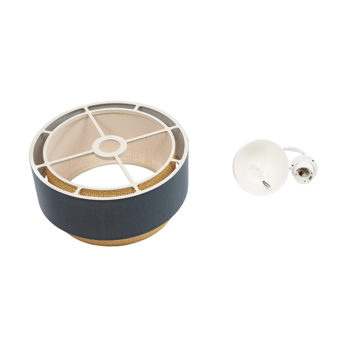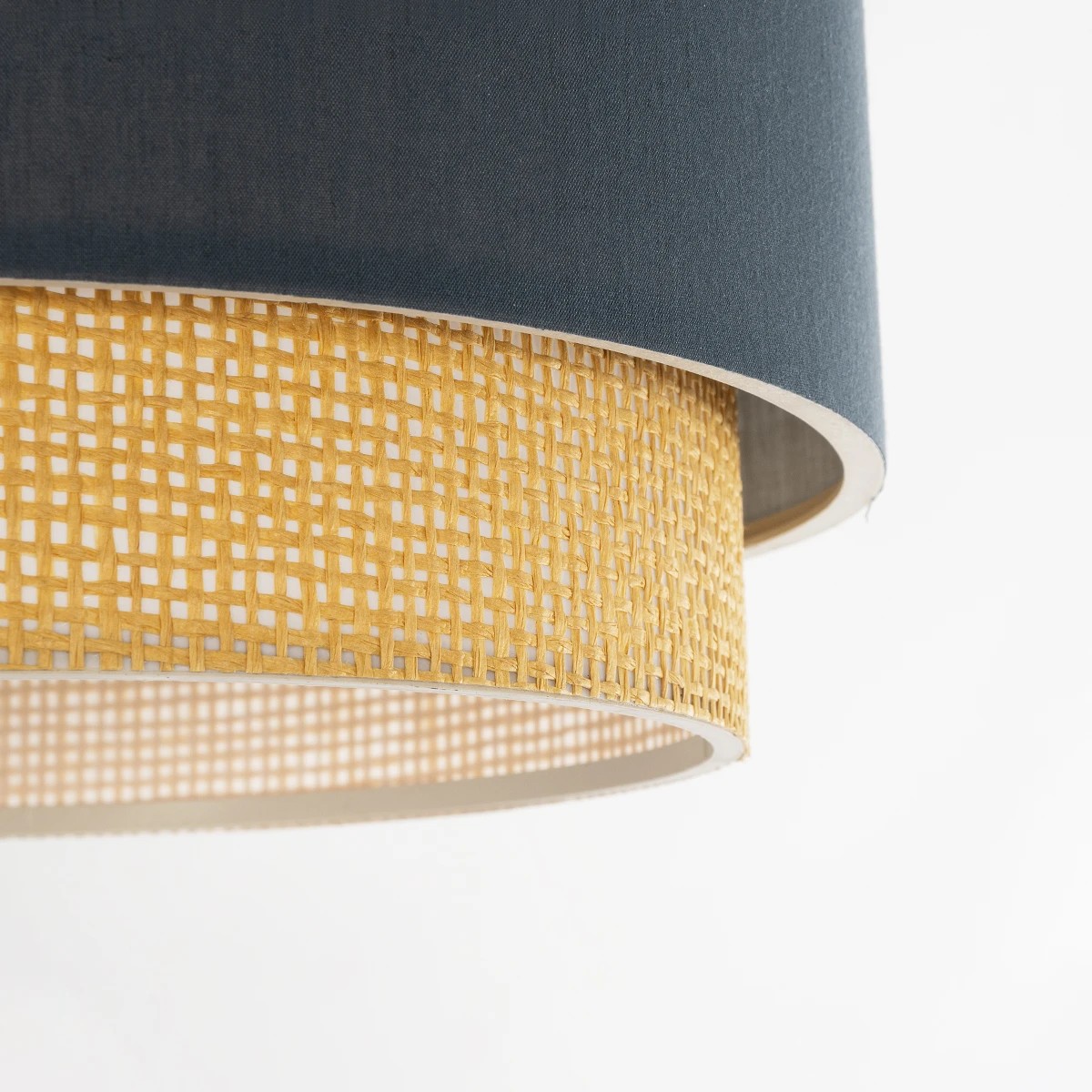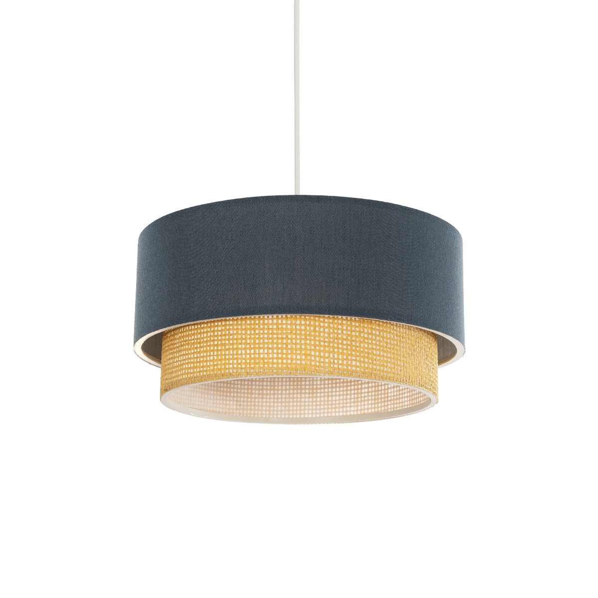 GloboStar® BIGGIE 204-0094 Μοντέρνο Κρεμαστό Φωτιστικό Kαπέλο Μονόφωτο 1 x E27 IP20 Μπλε Ύφασμα με Μπεζ Rattan – Μ30 x Π30 x Υ70cm