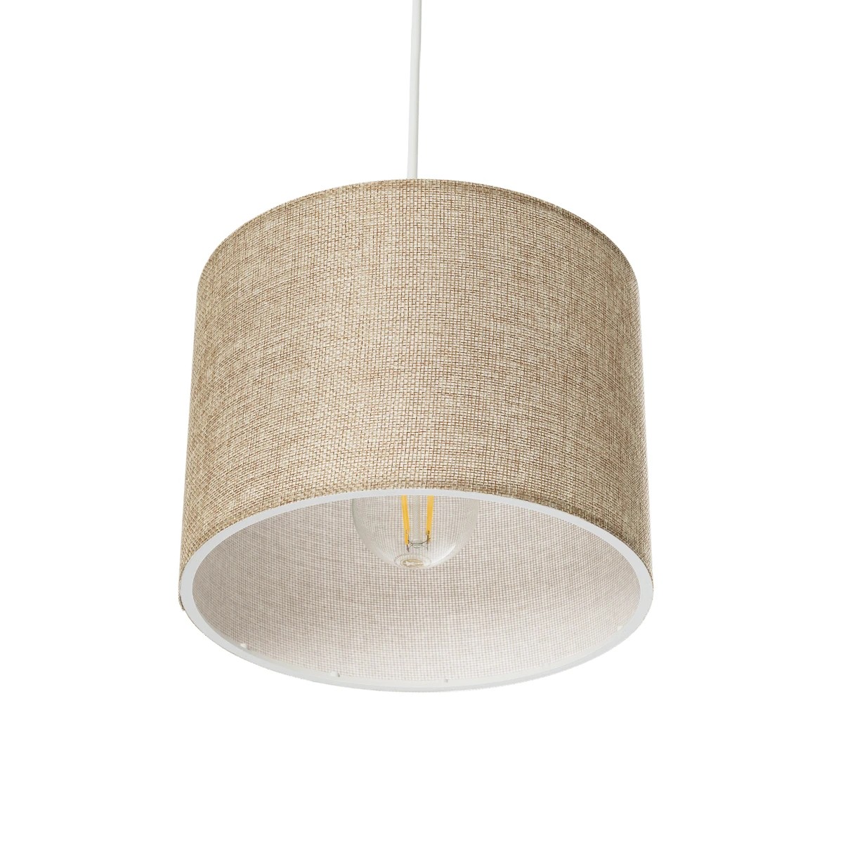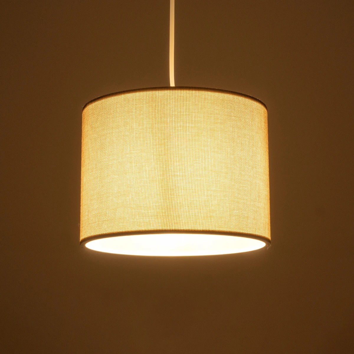 GloboStar® BLAZE 203-0107 Μοντέρνο Κρεμαστό Φωτιστικό Καπέλο Μονόφωτο 1 x E27 IP20 Μπεζ Ύφασμα – Μ22 x Π22 x Υ20cm