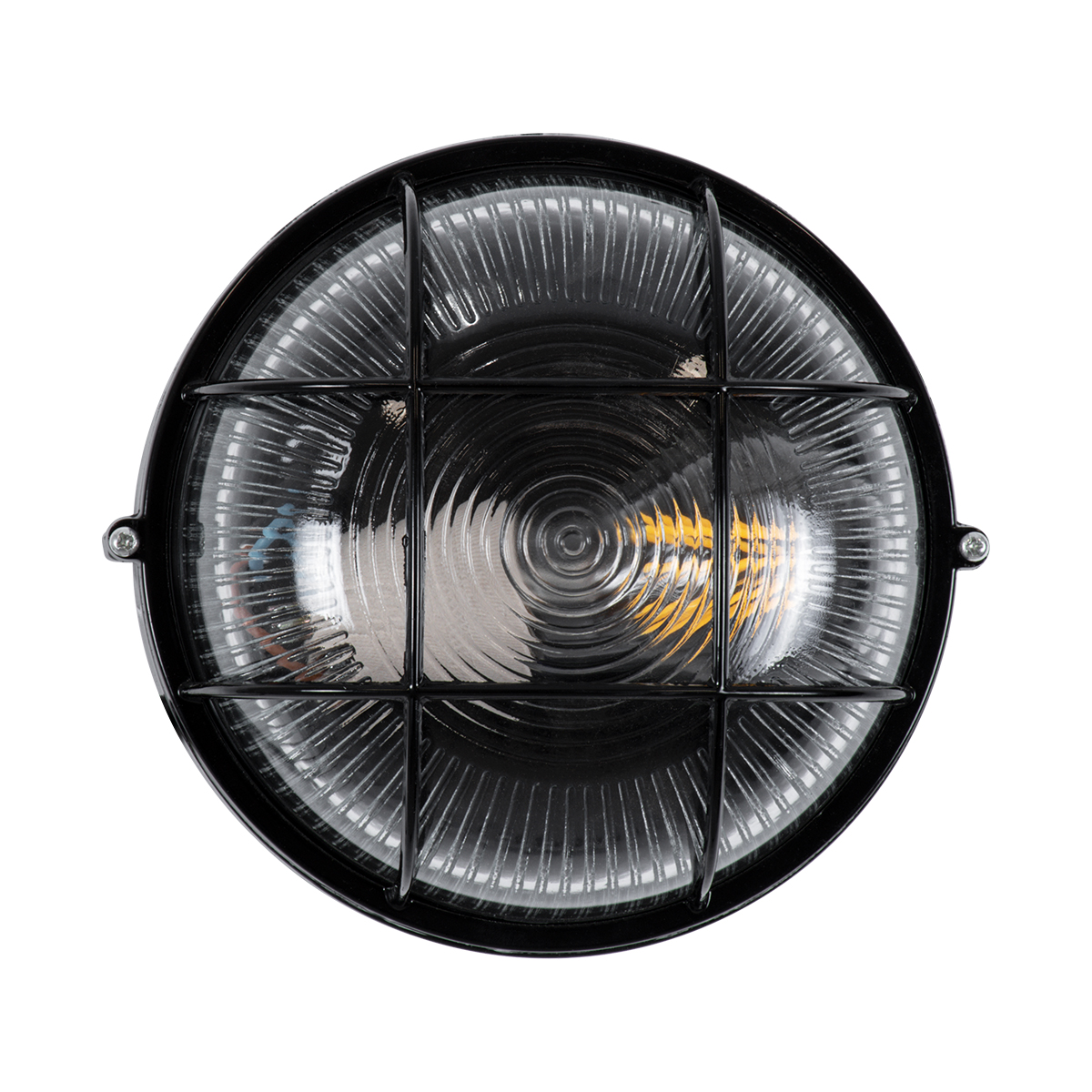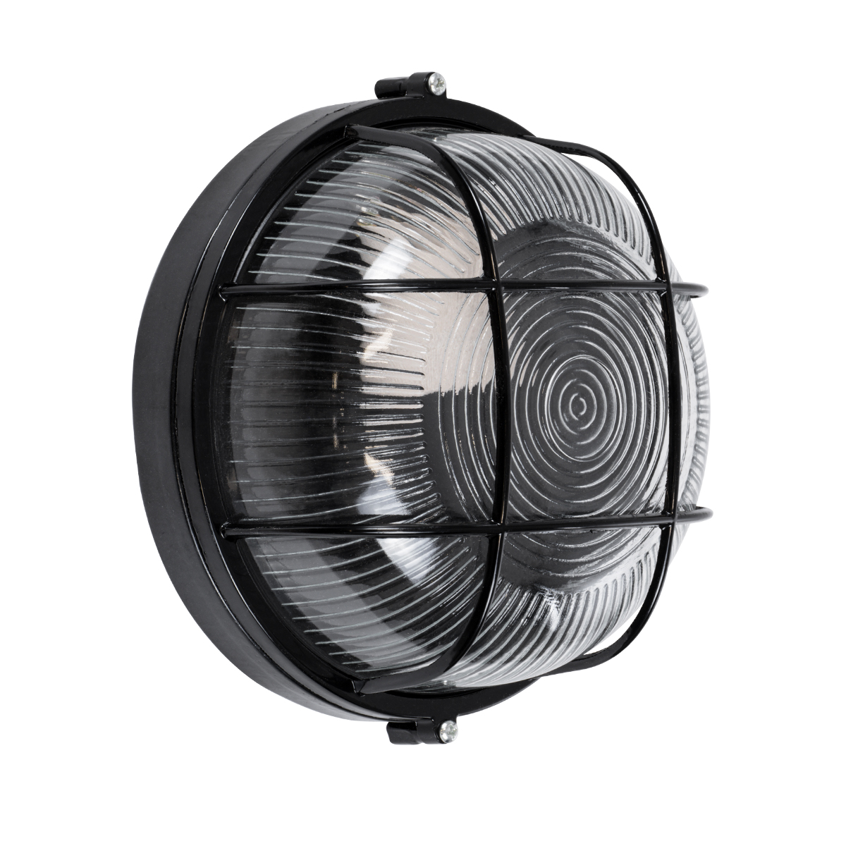 GloboStar® BOATLIGHT 61586 Vintage Industrial Φωτιστικό Τοίχου – Απλίκα – Καραβοχελώνα Εξωτερικού Χώρου Μονόφωτο 1 x E27 AC220-240V Αδιάβροχο IP65 – Σώμα Αλουμινίου & Tempered Glass – Φ17.5 x Υ9cm – Μαύρο – Στρόγγυλο – 5 Years Warranty