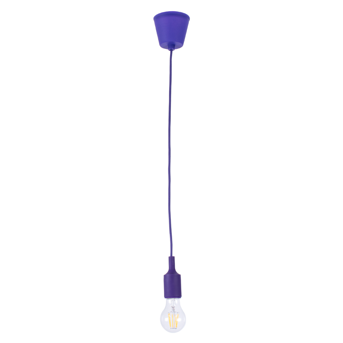 GloboStar® CABLITO 61560 Μοντέρνο Κρεμαστό Φωτιστικό Οροφής Μονόφωτο 1 x E27 Μωβ Σιλικόνης Ανάρτηση με Υφασμάτινο Καλώδιο Φ4 x Υ110cm