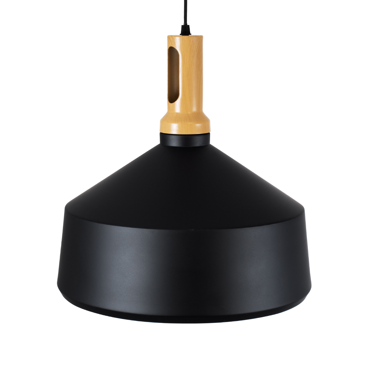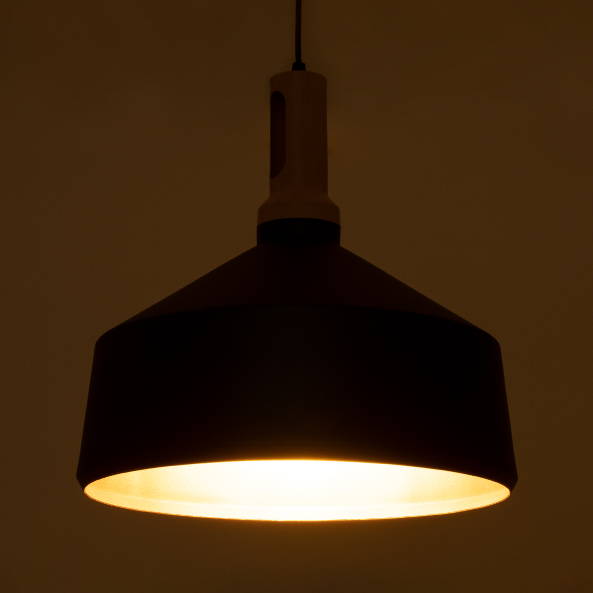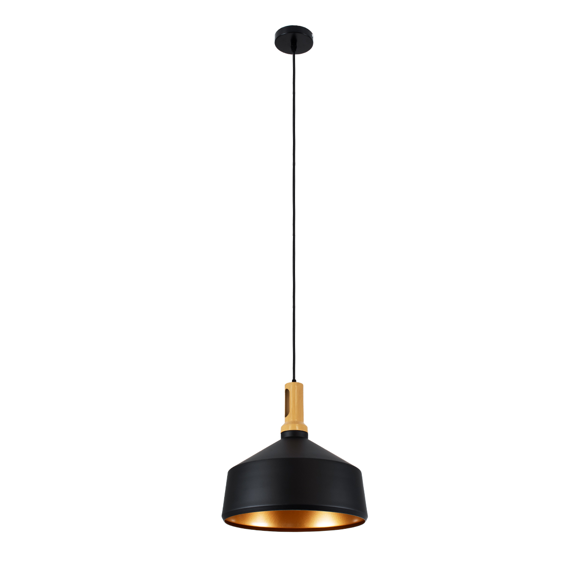 GloboStar® CALYPSO 01334-B Μοντέρνο Κρεμαστό Φωτιστικό Καμπάνα Μονόφωτο 1 x E27 IP20 Μαύρο & Χρυσό Μέταλλο με Μπεζ Ξύλο – Μ36 x Π36 x Υ35cm