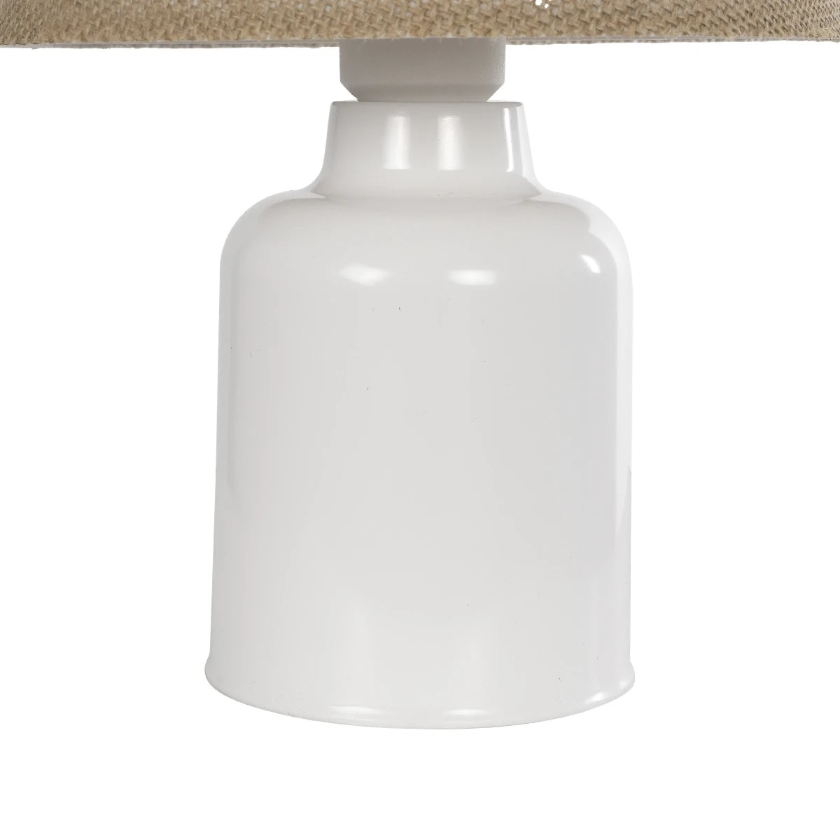 GloboStar® CIA 204-0082 Μοντέρνο Eπιτραπέζιο Φωτιστικό Μονόφωτο 1 x E27 IP20 Λευκό Πλαστικό με Μπεζ Ύφασμα – Μ24 x Π24 x Υ31cm