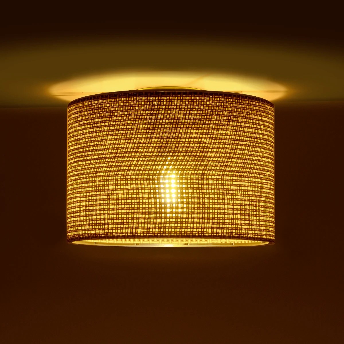 GloboStar® CILIO 203-0151 Μοντέρνο Φωτιστικό Οροφής Καπέλο Μονόφωτο 1 x E27 IP20 Καφέ Διάτρητο Ύφασμα – Μ30 x Π30 x Υ21cm