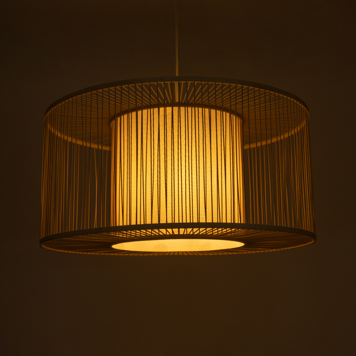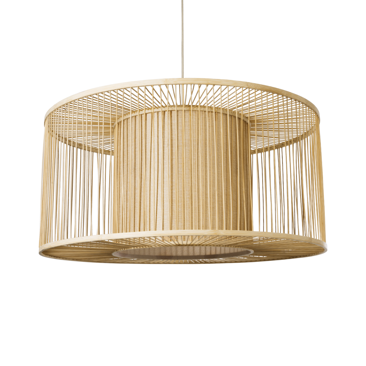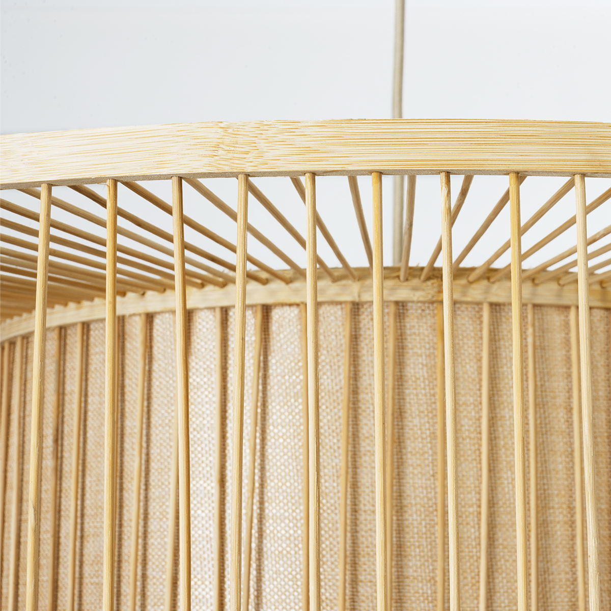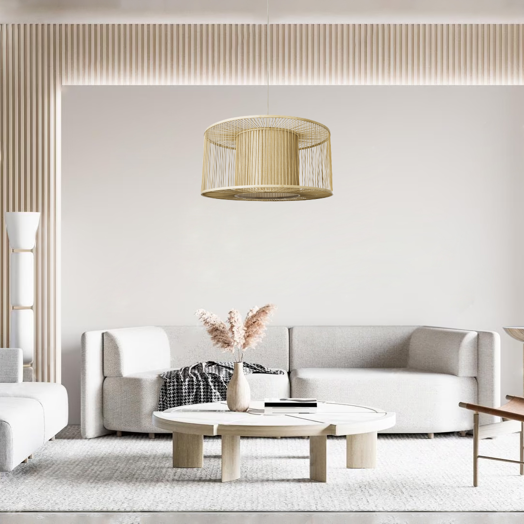 GloboStar® HIBISCUS 01936 Boho Κρεμαστό Φωτιστικό Πλέγμα Μονόφωτο 1 x E27 IP20 Μπεζ Ξύλο – Μ80 x Π80 x Υ38cm