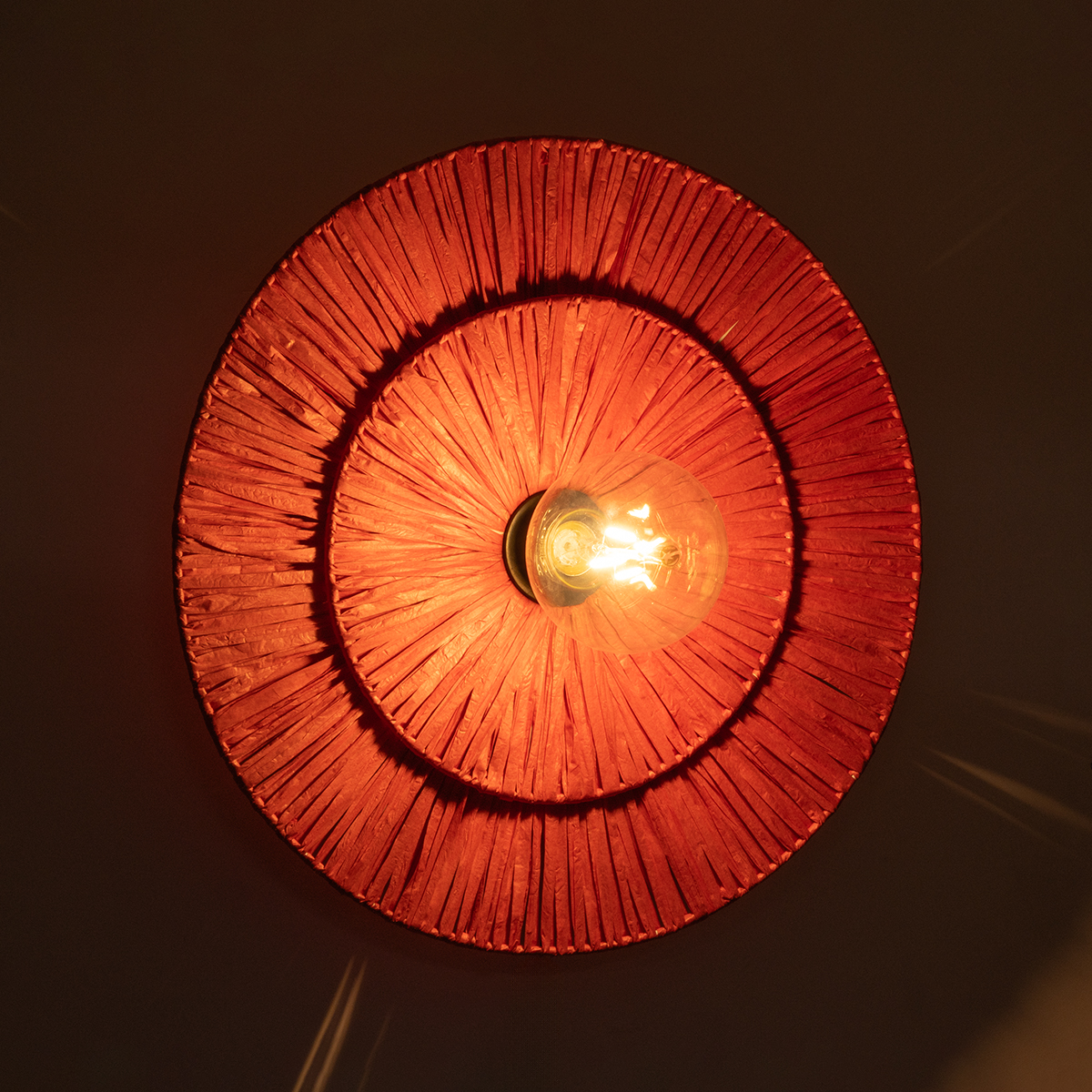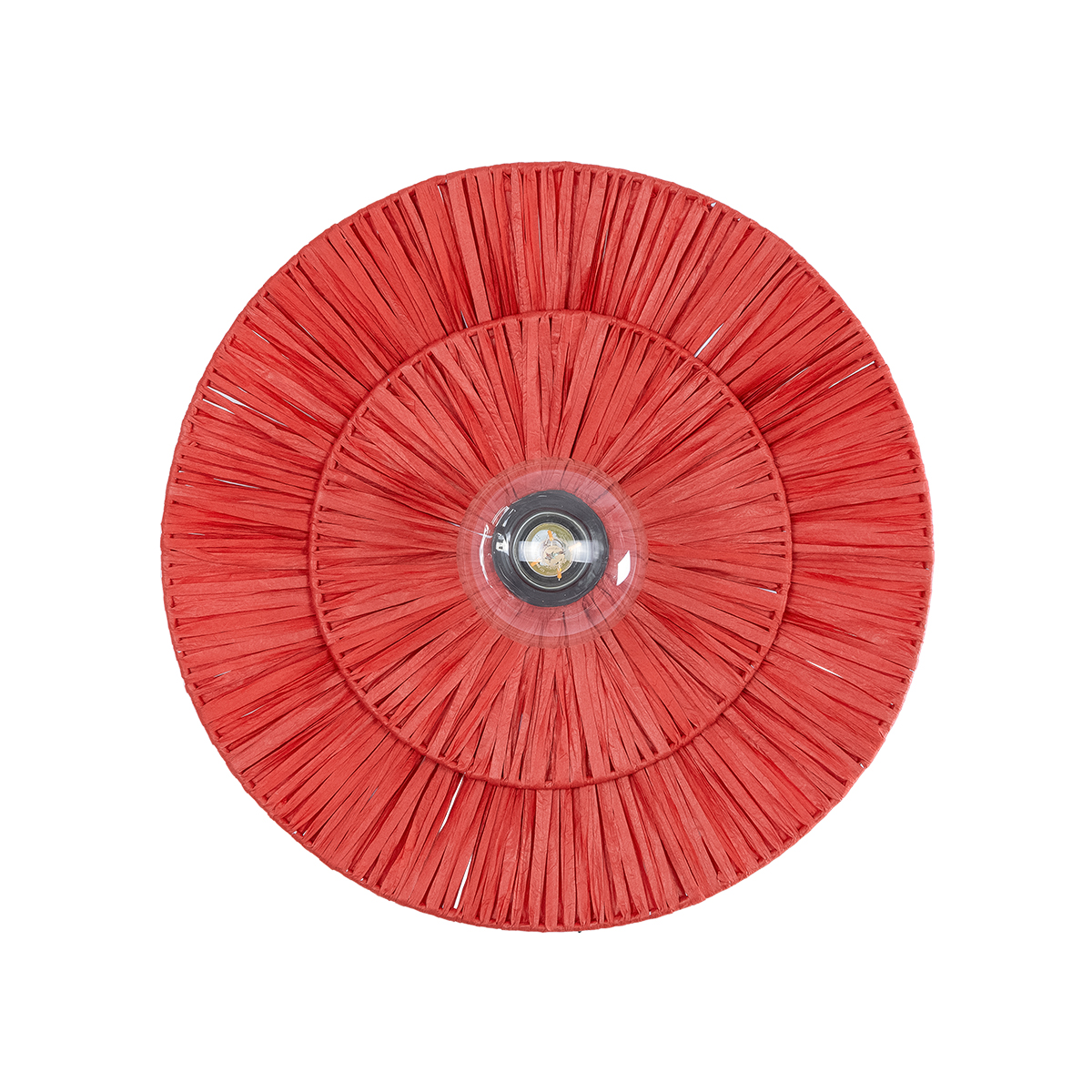 GloboStar® COLOMBO 02282 Boho Επιτοίχιο Φωτιστικό Απλίκα Μονόφωτο 1 x E27 IP20 Κόκκινη Ράφια – Μ40 x Π40 x Υ9cm