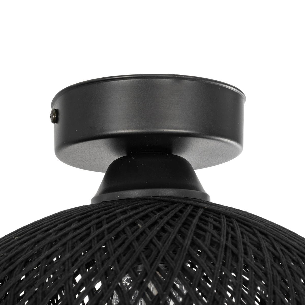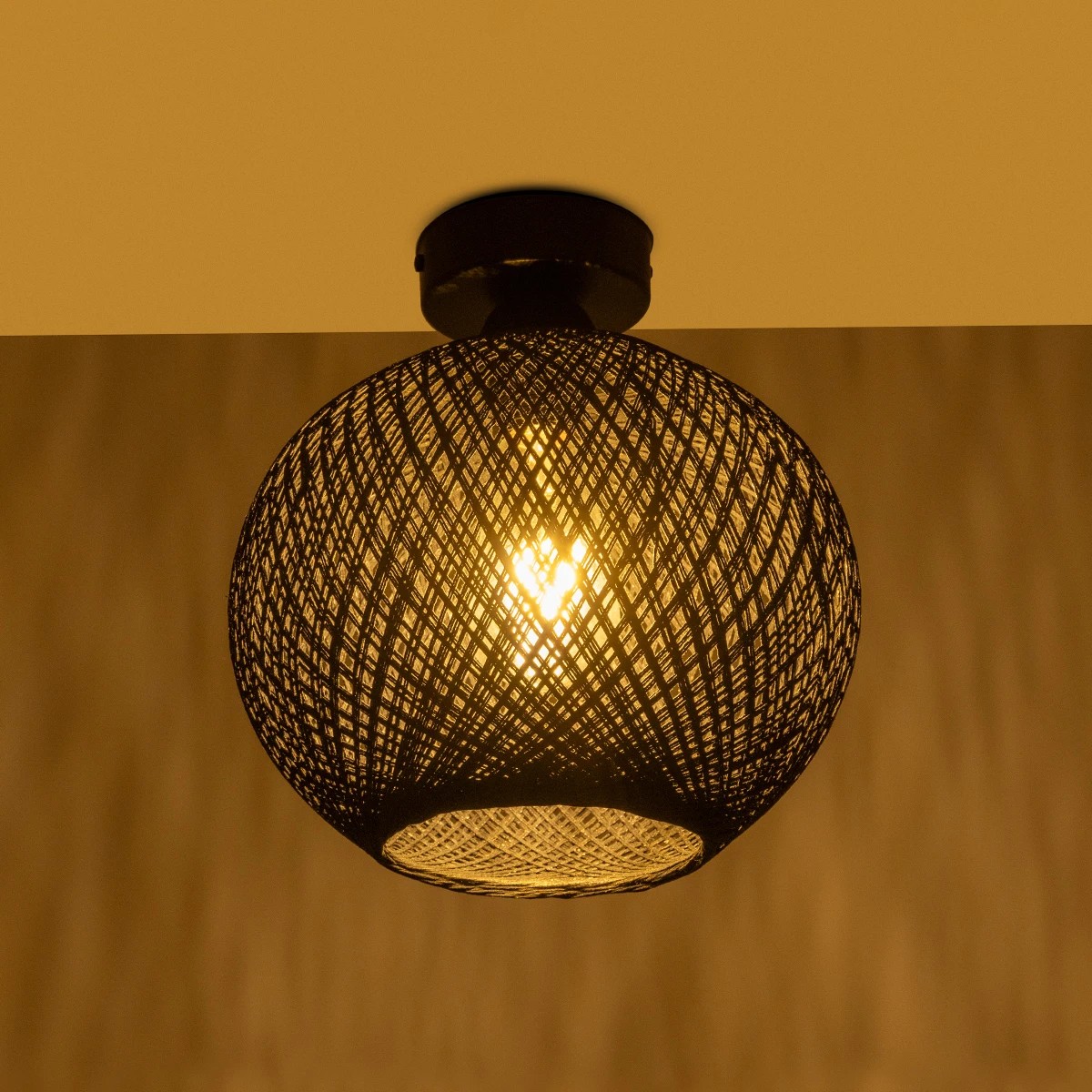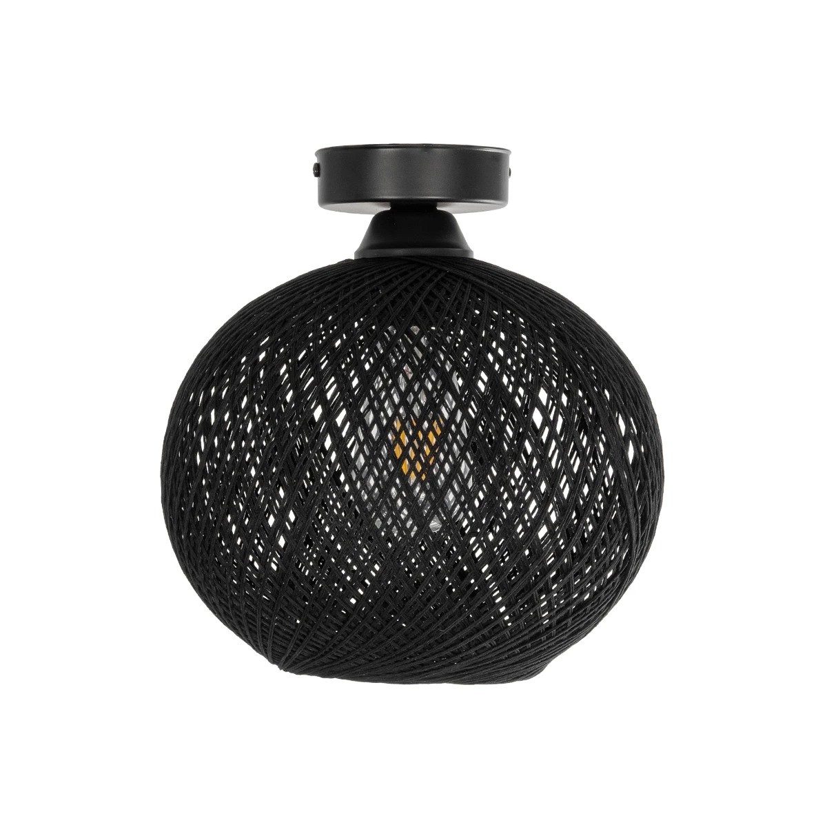 GloboStar® CORDER 203-0271 Μοντέρνο Φωτιστικό Οροφής Μπάλα Μονόφωτο 1 x E27 IP20 Μαύρο Σχοίνι – Μ26 x Π26 x Υ30cm