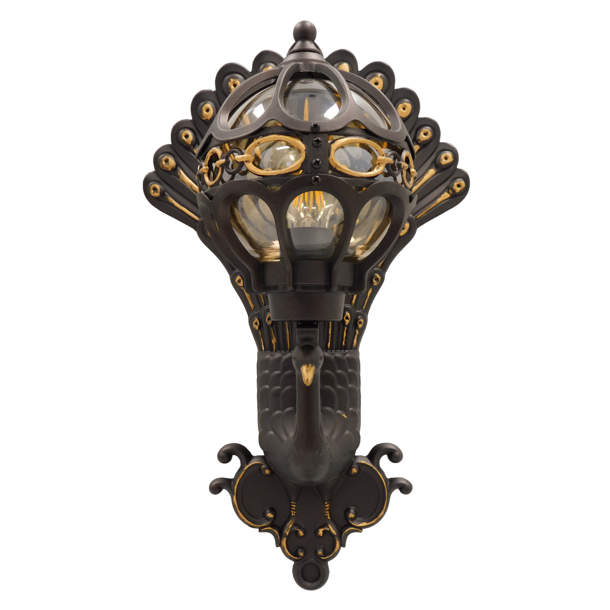 GloboStar® CORNELIA 01250 Vintage Φωτιστικό Τοίχου Απλίκα Μονόφωτο Καφέ Σκούρο Μεταλλικό Πλέγμα με Γυαλί Μ20 x Π32 x Υ55cm