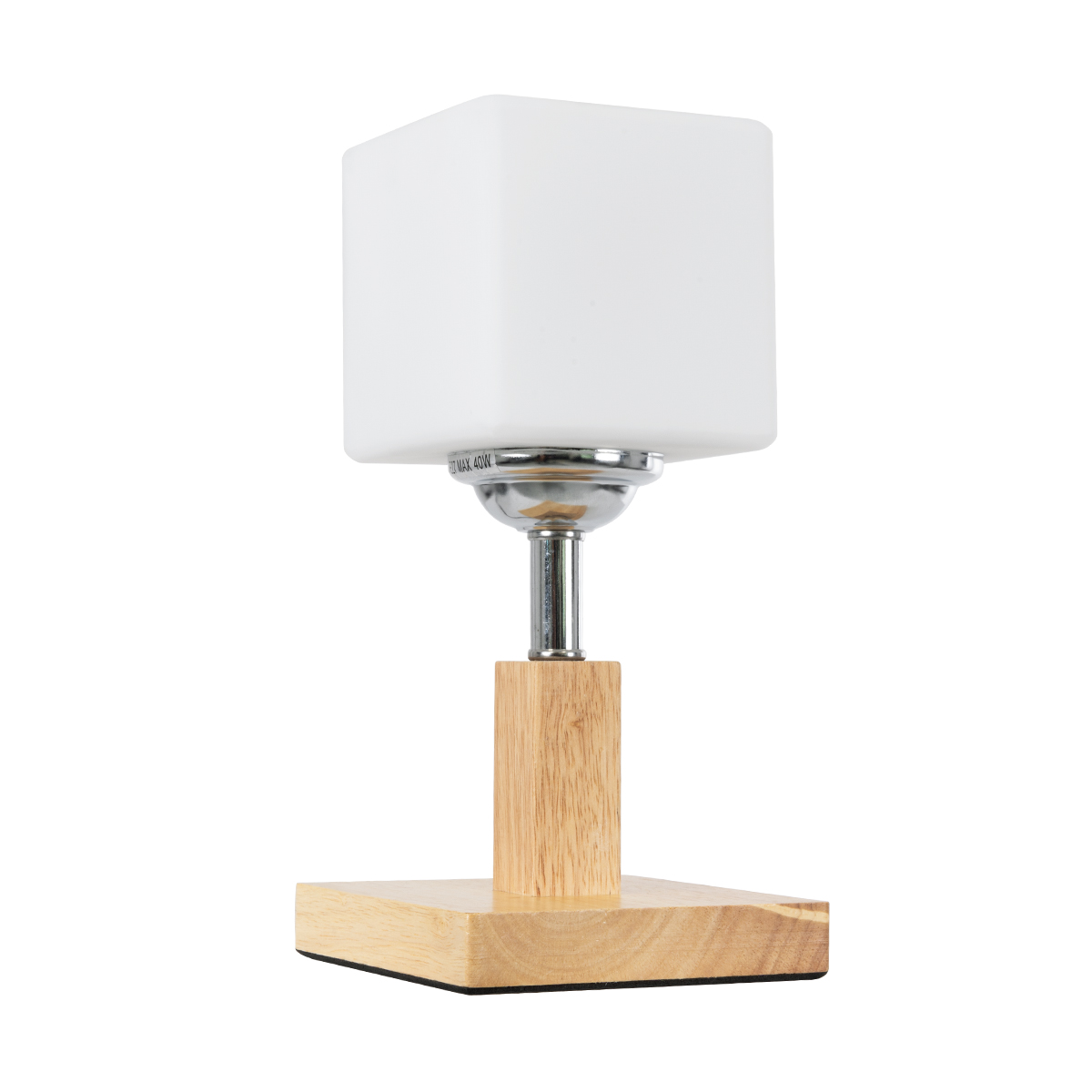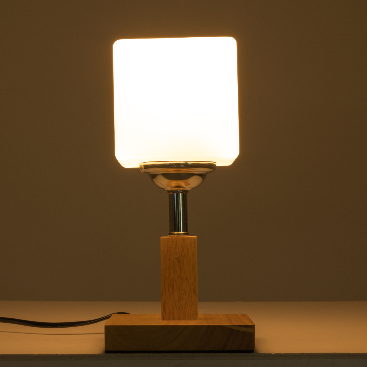 GloboStar® COVE 02037 Μοντέρνο Επιτραπέζιο Φωτιστικό Μονόφωτο 1 x E27 AC220-240V IP20 – Μ12 x Π12 x Υ25cm – Μπεζ Ξύλινο & Γυάλινο Γαλακτερό Κύβο