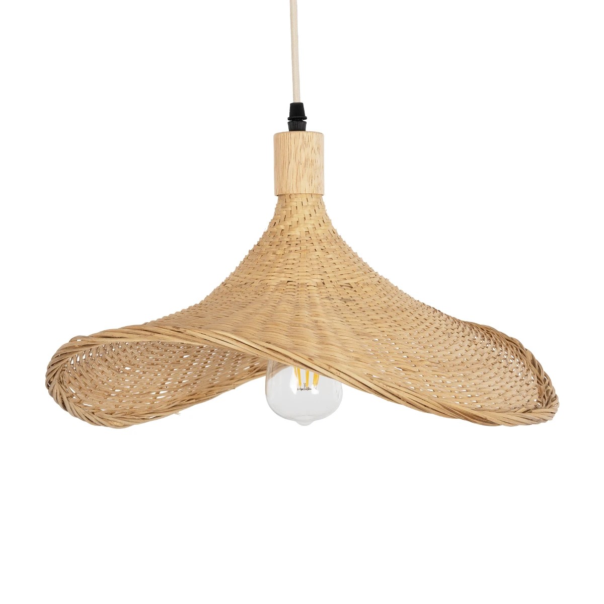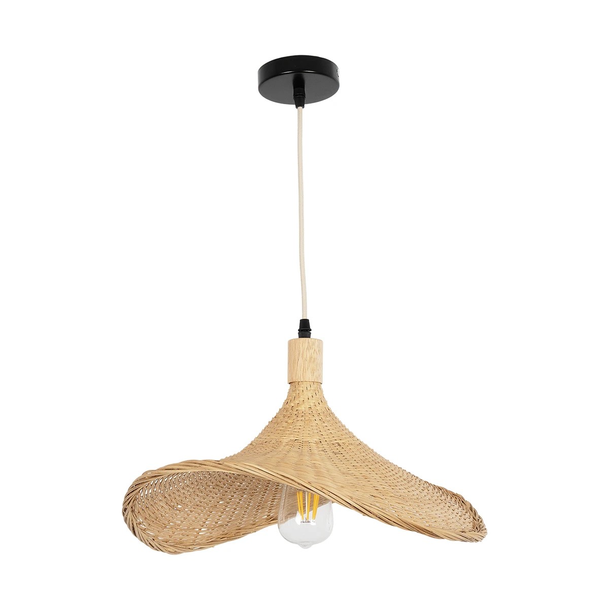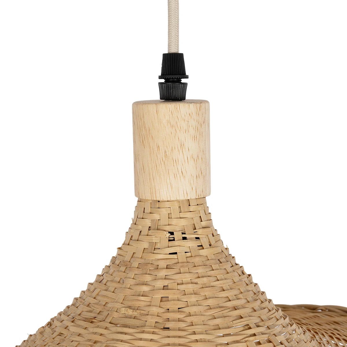 GloboStar® CUBA 01717 Boho Κρεμαστό Φωτιστικό Ανάρτηση Μονόφωτο 1 x E27 IP20 Μπεζ Ξύλο – Μ43 x Π43 x Y30cm