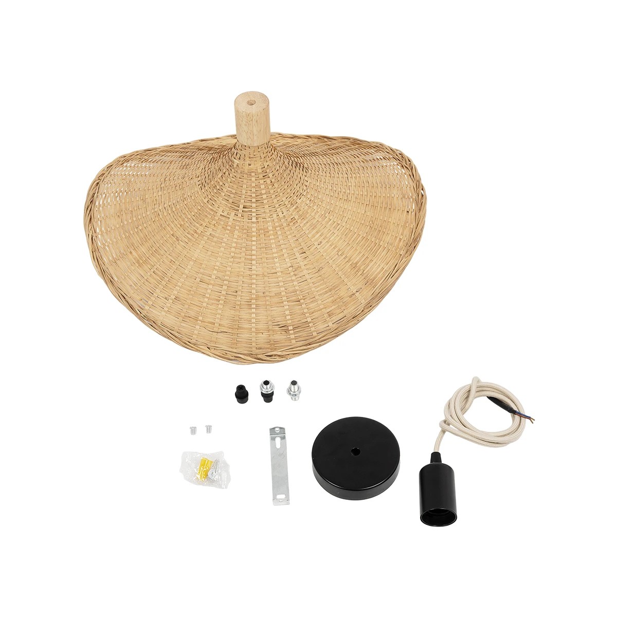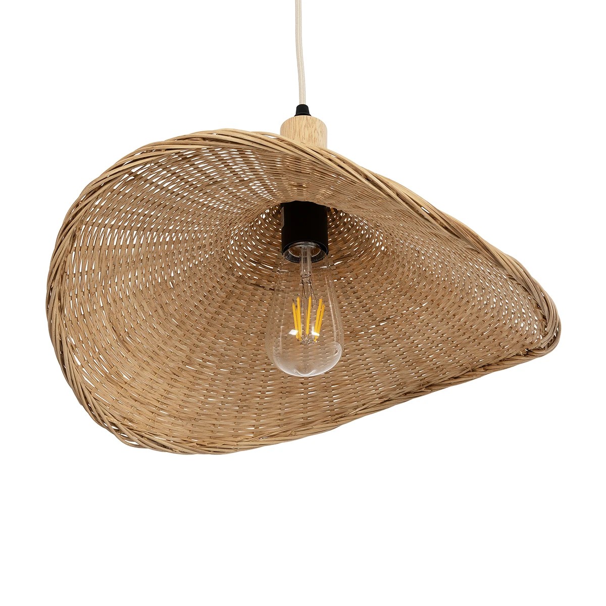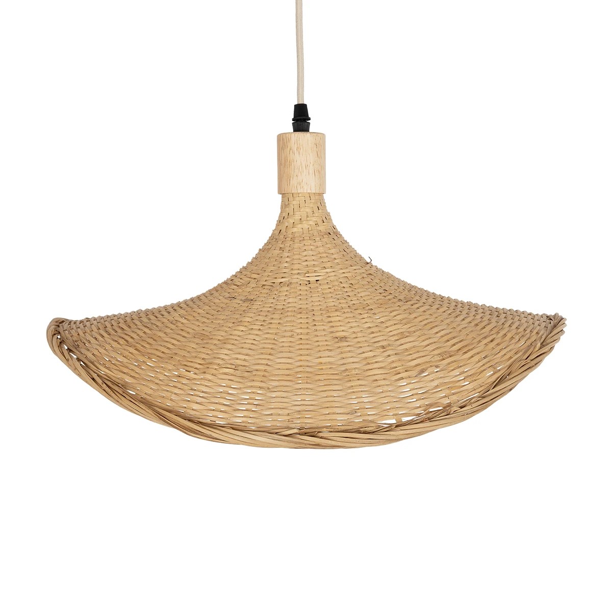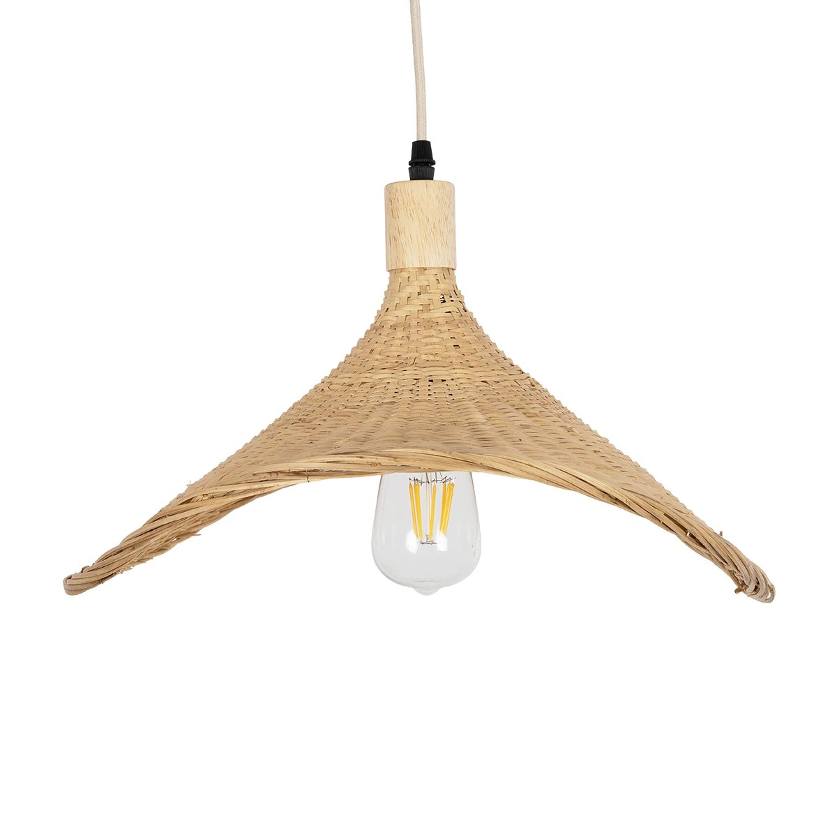 GloboStar® CUBA 01717 Boho Κρεμαστό Φωτιστικό Ανάρτηση Μονόφωτο 1 x E27 IP20 Μπεζ Ξύλο – Μ43 x Π43 x Y30cm