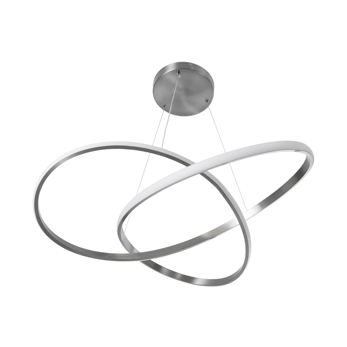 GloboStar® DEXTER 60915 Κρεμαστό Φωτιστικό Οροφής Design LED CCT 90W 10080lm 300° AC 220-240V – Εναλλαγή Φωτισμού μέσω Τηλεχειριστηρίου All In One Ψυχρό 6000k+Φυσικό 4500k+Θερμό 2700k Dimmable Φ73cm – Νίκελ Ασημί Βούρτσας – 3 Years Warranty