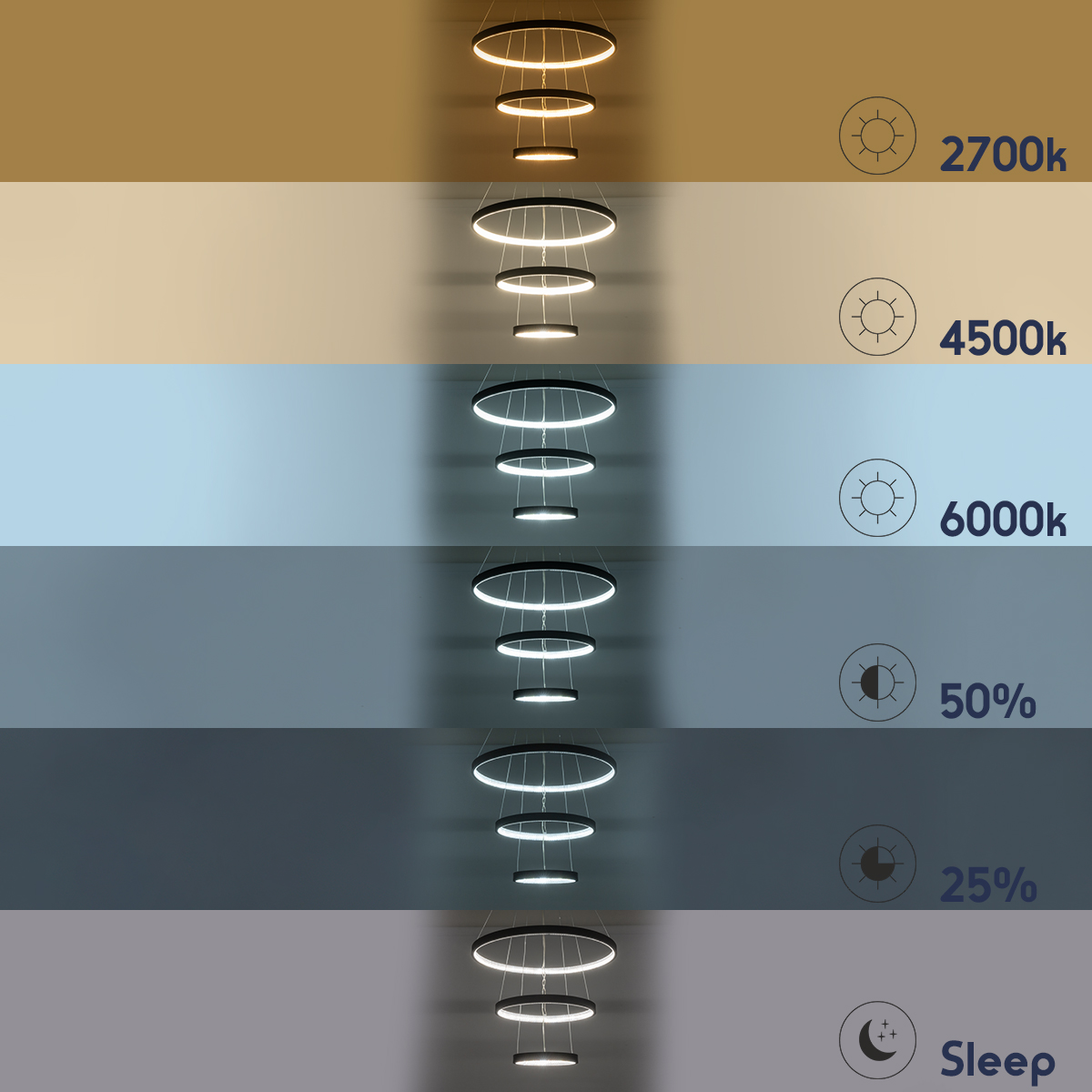 GloboStar® DIAMOND TRIO 61523 Κρεμαστό Φωτιστικό Δαχτυλίδι-Κύκλος LED CCT 100W 11200lm 360° AC 220-240V – Εναλλαγή Φωτισμού μέσω Τηλεχειριστηρίου All In One Ψυχρό 6000k+Φυσικό 4500k+Θερμό 2700k Dimmable Φ25+40+60cm – Μαυρο – 3 Χρόνια Εγγύηση