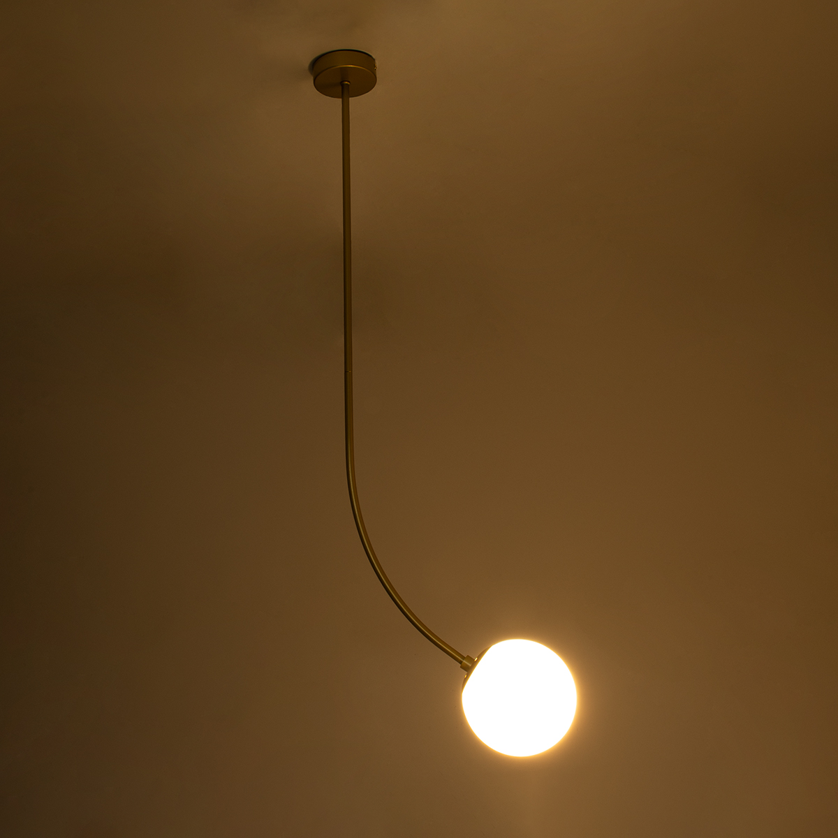 GloboStar® DRIZZLE 00922 Μοντέρνο Φωτιστικό Οροφής Μπάλα Μονόφωτο 1 x E27 IP20 Χρυσό Μέταλλο με Λευκό Γυαλί – Μ15 x Π15 x Υ70cm